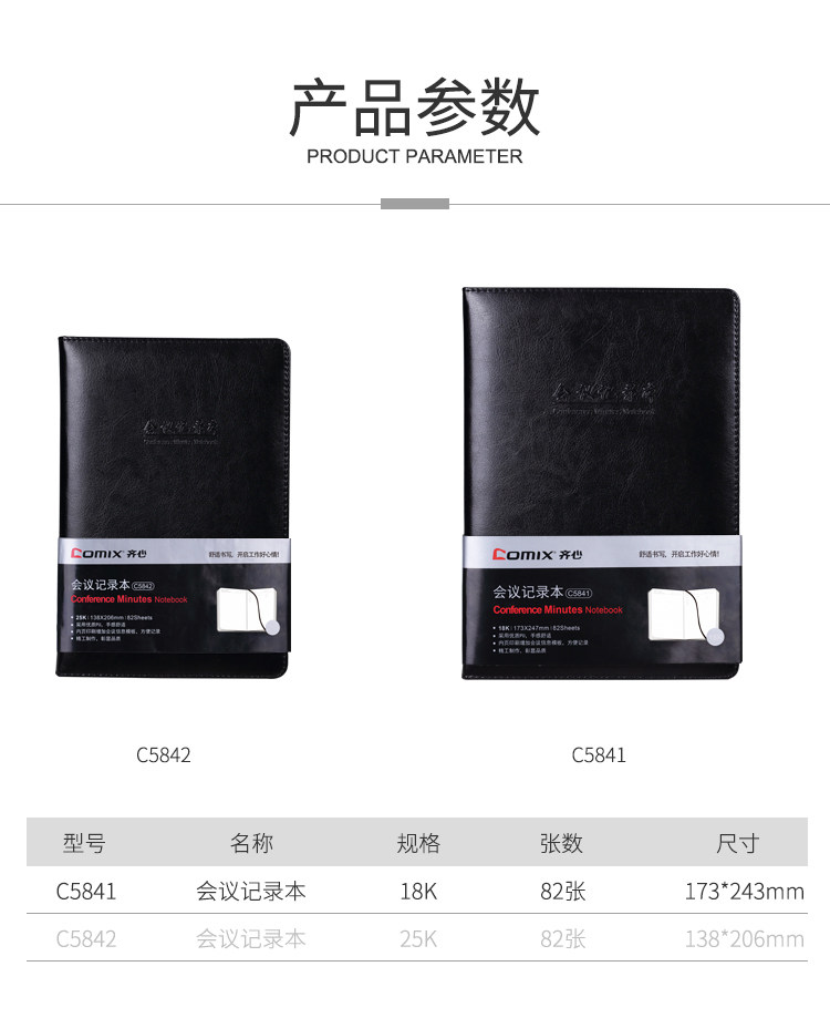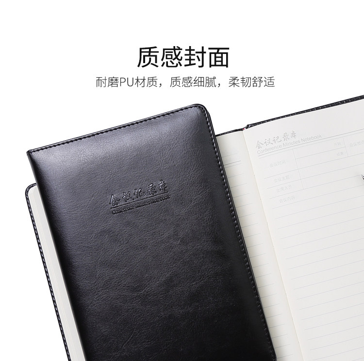 Qixin C5841 книга протоколов встреч, 18K, 80 листов, компактная портативная книга протоколов встреч, блокнот в кожаном переплете, незаменимая черная книга в кожаном переплете