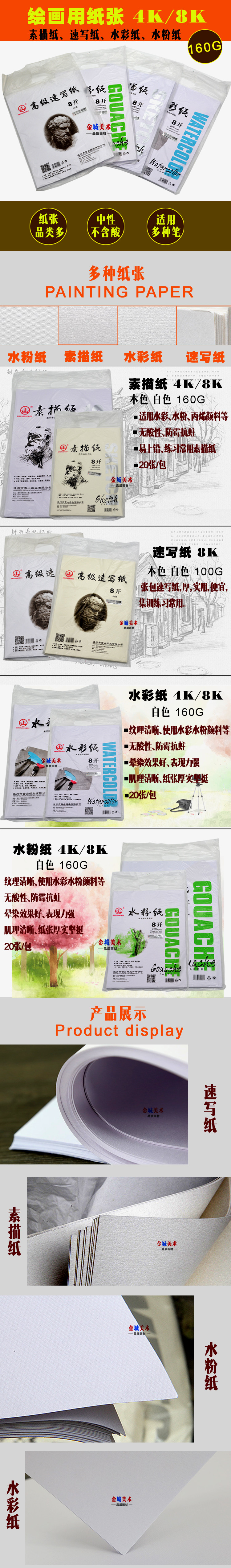 【Функции】:100%импортная деревянная мякоть, длинное бумажное волокно, сильная прочность, жесткая стойкость втирания, а не волосатая, легкая свинец, без кислотности, без отбеливающего агента. Пепел.Естественная текстура поверхности вместо подавления, грубая и грубая, заставляя картину выглядеть гладкой, деликатной, яркой и естественной.Это лучший выбор художников