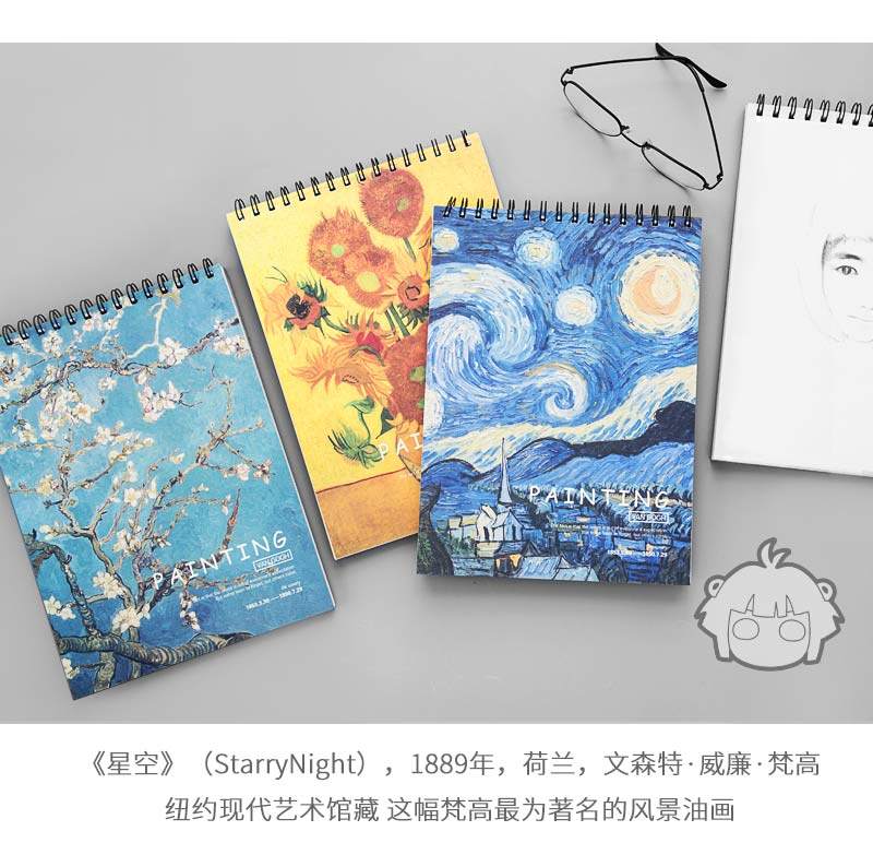 小槑同学 Blank Blank Blank Van Gogh серия красочный ведущий набросок. Этот художественный студент A3/A4 Painting Paper Student использует литературу с ручной работы и художественный маленький свежий и прекрасный набросок. Эта книга живописи