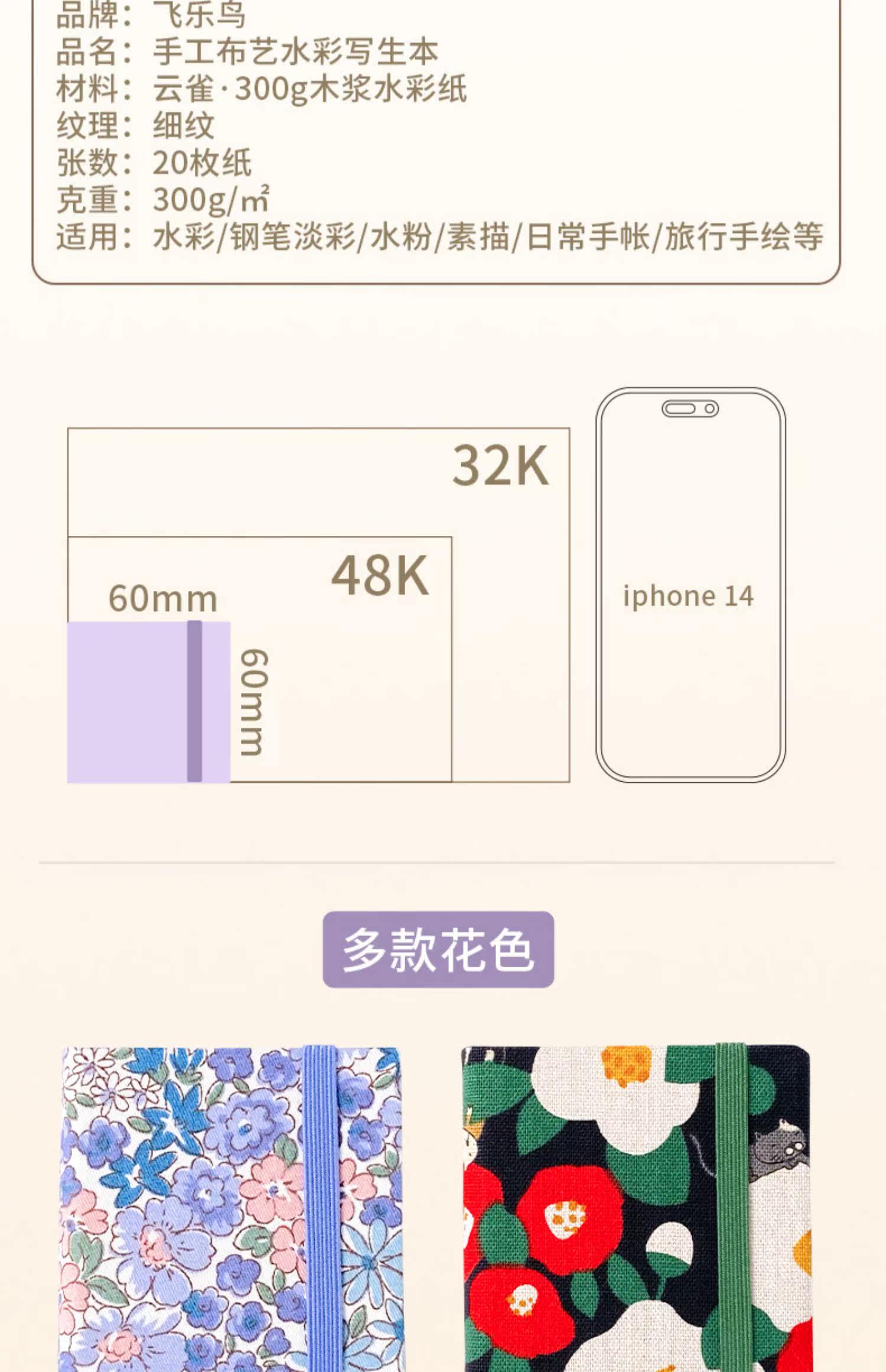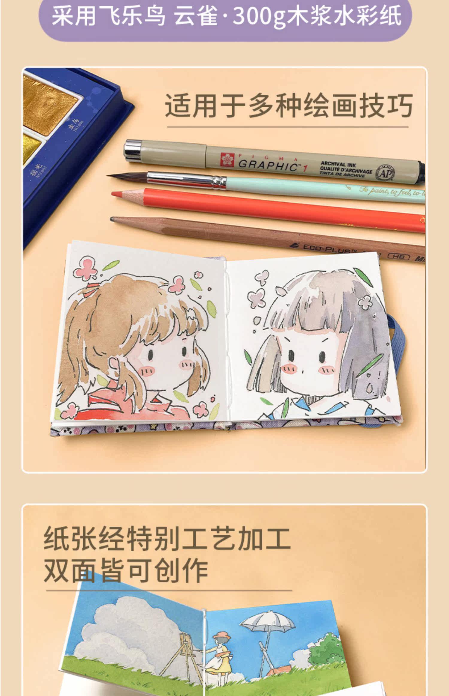 飞乐鸟 Маленькая ткань, акварель, высококачественный карманный блокнот, художественная портативная книга с картинками для путешествий, 300G, против морщин