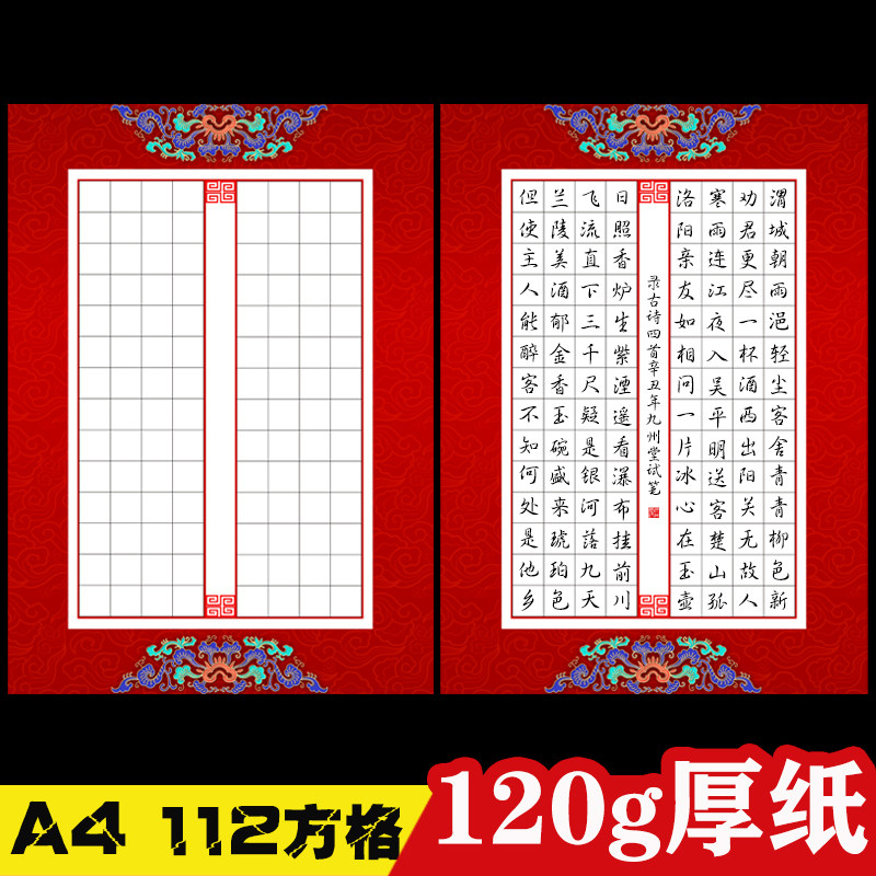 A4 квадратная сетка Red Hard Pen Callicraphy Work Paper пишет Long March Qinyuan Chun 56 Grid 120 Grid Five -Character Древние стихи