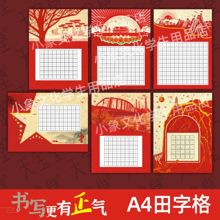 天宝堂 Тянзи сетка жесткая ручка каллиграфия работа Бумага 56 Грид А4 Толстая Национальная Винтер Красный Цинюань пять Семь слов стихи
