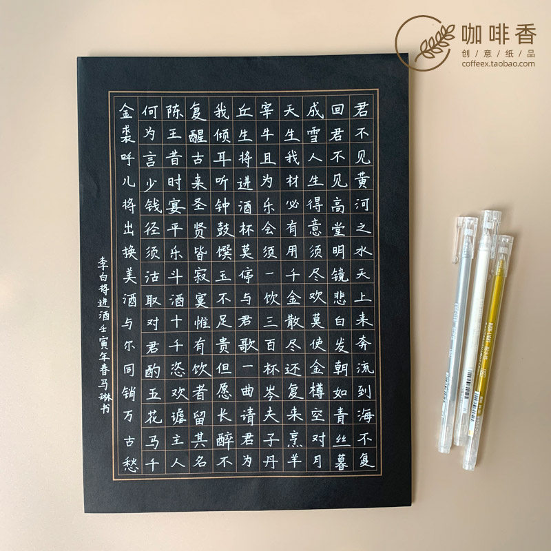 | Цвет: | Каллиграфия бумажная белая 136 сетки 30 листов, Каллиграфия бумажные белые 144 сетки 30 листов, Каллиграфия бумага-черная номинация 160 сетки 30 штук, Каллиграфия бумага-черная 176 сетка 30 штук, Выделите ручку-один с золотом, серебром и белым |