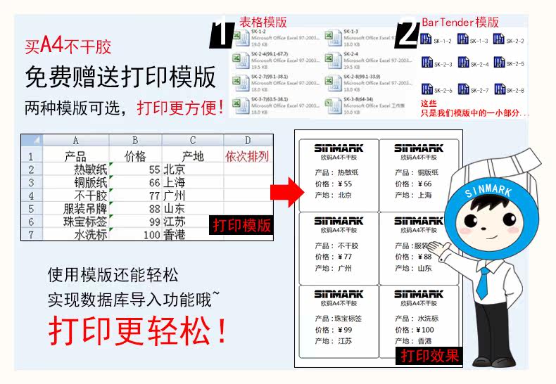 Синь код A4 Яркая лапша, не -нская клейкая бумага для печати лазерная пустая клейкая бумага наклейка