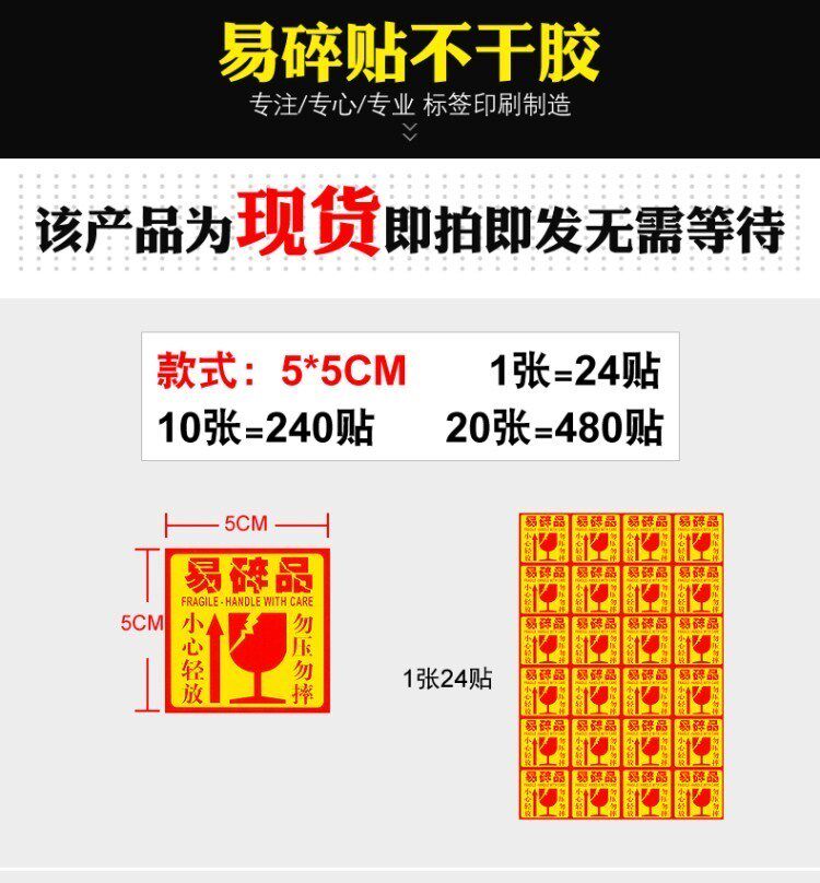 Печать и доставка, не падайте хрупкую метку, этикетку, наклеивание компьютерной наклейки на бумагу Carton Logistics, будьте осторожны, чтобы положить большое большое количество