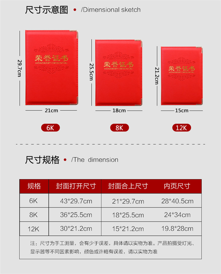 | Размер крышки: | Сертификат чести 16K (минимум) сумка, 12K Почетный сертификат (маленький) сумка, 12 тыс. Почетный сертификат (маленький) коробка, 8K Почетный сертификат (средний) сумка, 8K почетный сертификат (средний) коробка, 6K Почетный сертификат (большой) сумка, 6K Почетный сертификат (большой) коробка, Есть книги по трудоустройству в том же размере, пожалуйста, свяжитесь с обслуживанием клиентов |