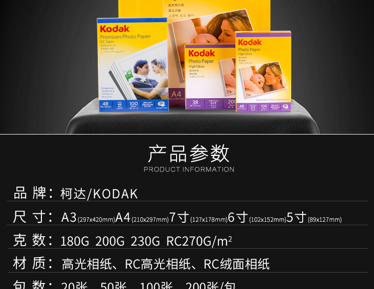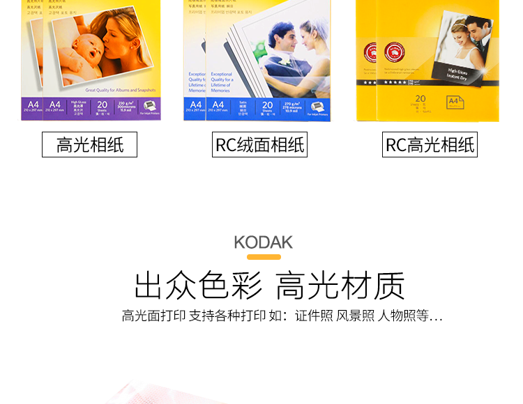Подлинный Kodak 270g A3 RC Водонепроницаемая высокопоставленная фото бумага 270 грамм фазовой бумажной струйной печати фото бумаги