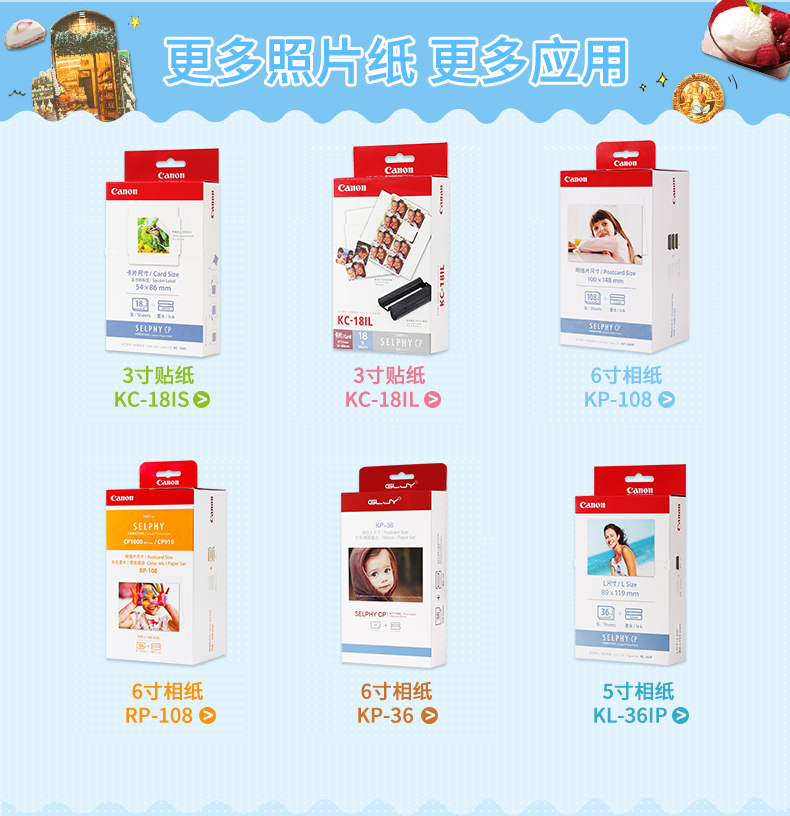 Canon KC-36ip фотореатив Photo Printer 3-дюймовая фото бумага 3-дюймовая фото бумага KC-18C Size CP910 CP1300 1200 Фото бумага Трехно-дюймовая наклейка фото бумага фото бумага