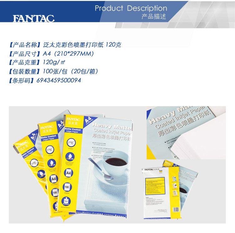 Pan -pacific 120G Phase Paper A4 Фото бумага Цветная струйная печатная бумага A3 Операционная бумага Медицинская печать B -UltraSound Medical Resume A3 Record Paper 105G Рецепт рецепт бумаги Matte Paper