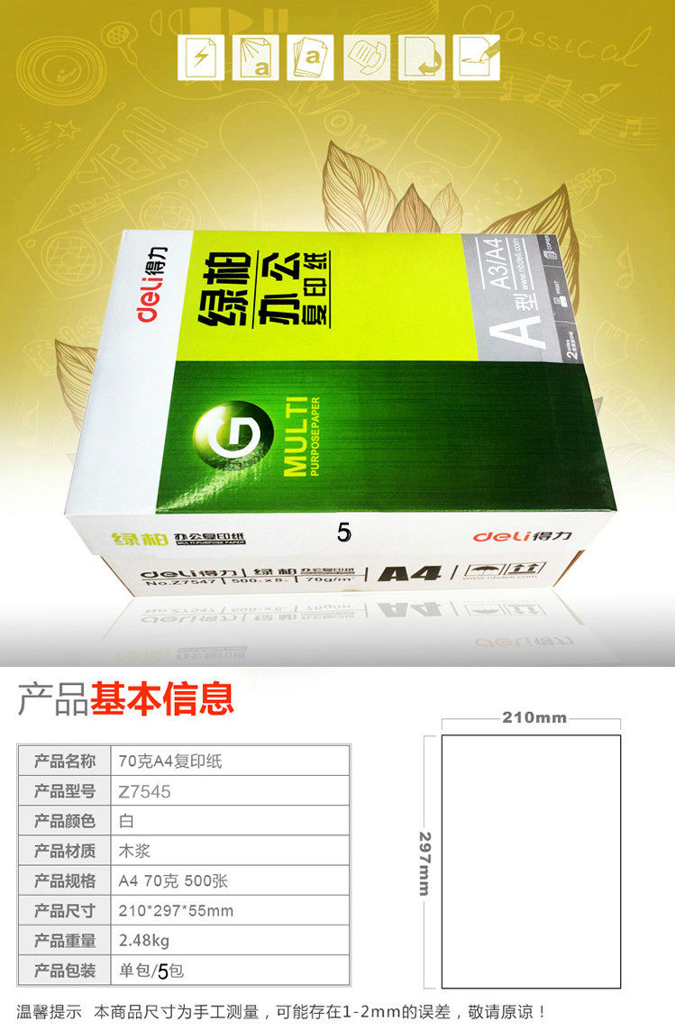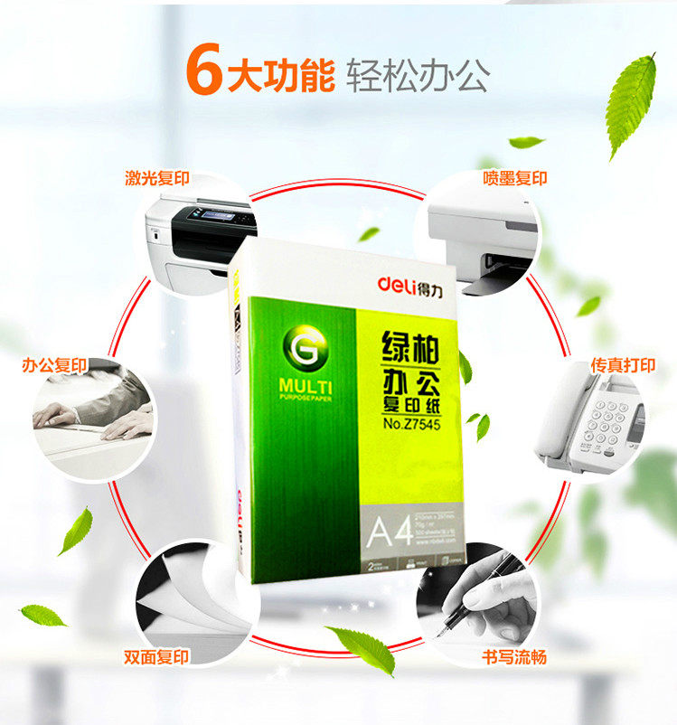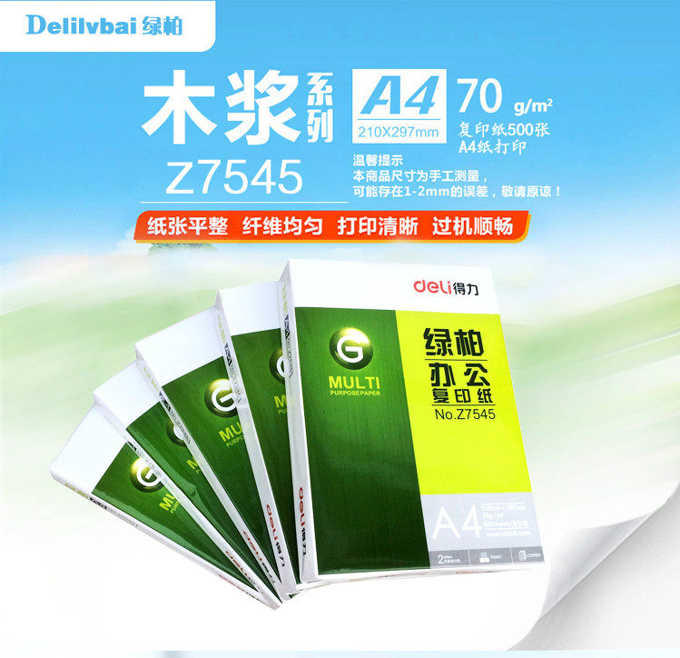 Deeli Green Cypress Printed Paper A4 Копировальная бумага бумага бумага Бумажная бумага Полная коробка 8/10 Упаковка
