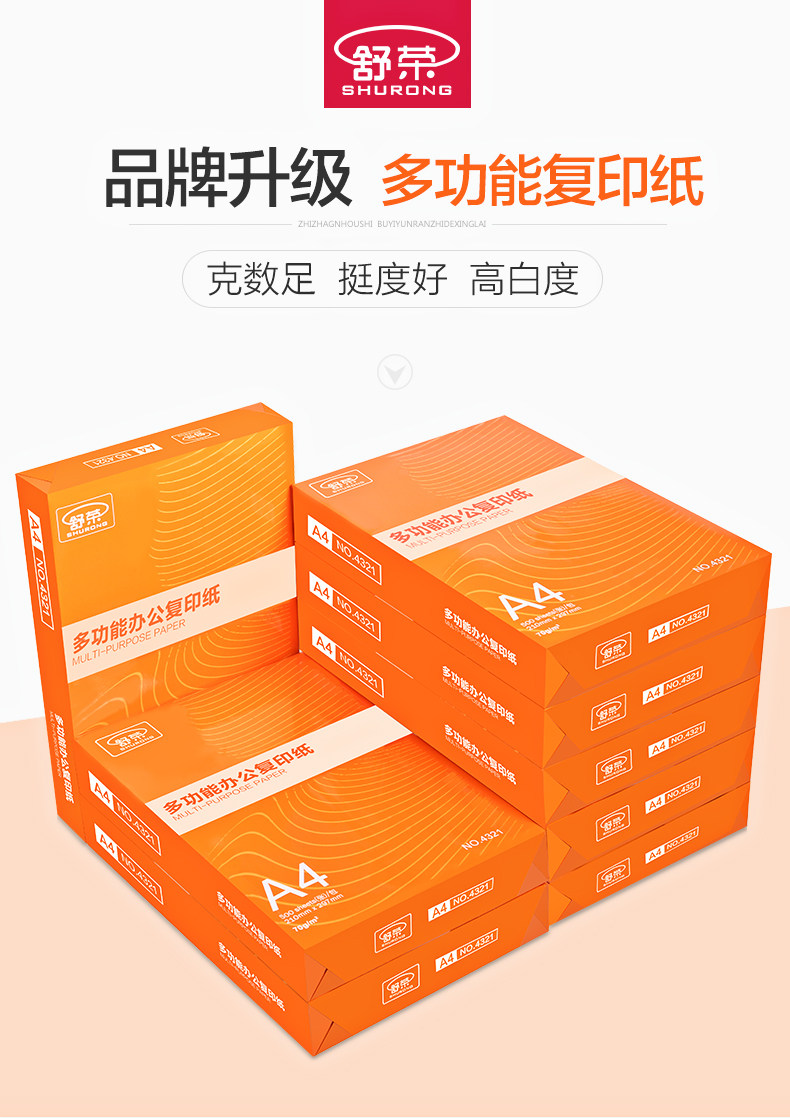 [Обновление] Shu Rong A4 Paper A4 Printing Copy Paper 70G Белый бумажный офис Поставляет 80 г одиночных пакетов из 500 кусоч