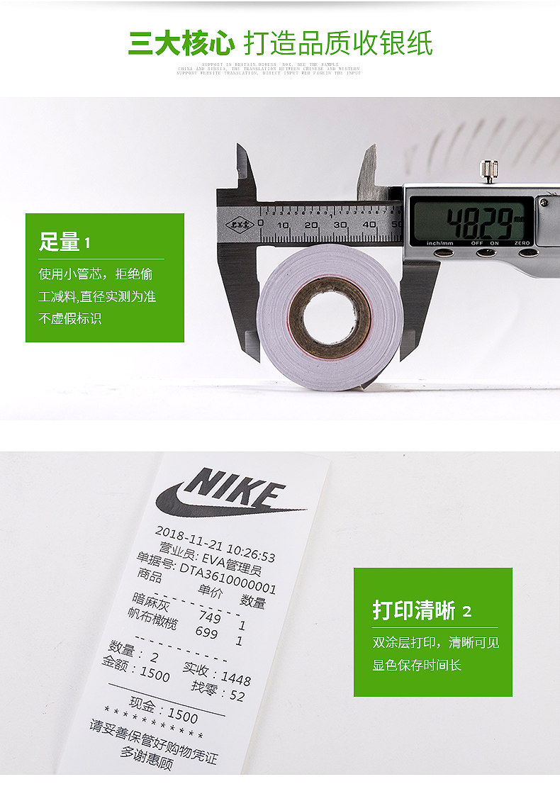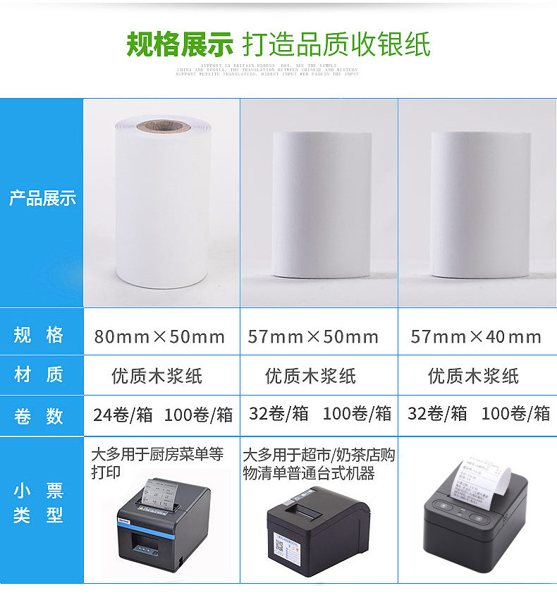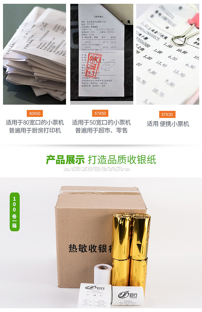57*50 Термический кассовый регистр бумажный билет Небольшой билет травяная бумага Горячая бумага для печати 57x50 Тепловая бумага Тепловая печатная бумага 58 -мм тепло -чувствительное