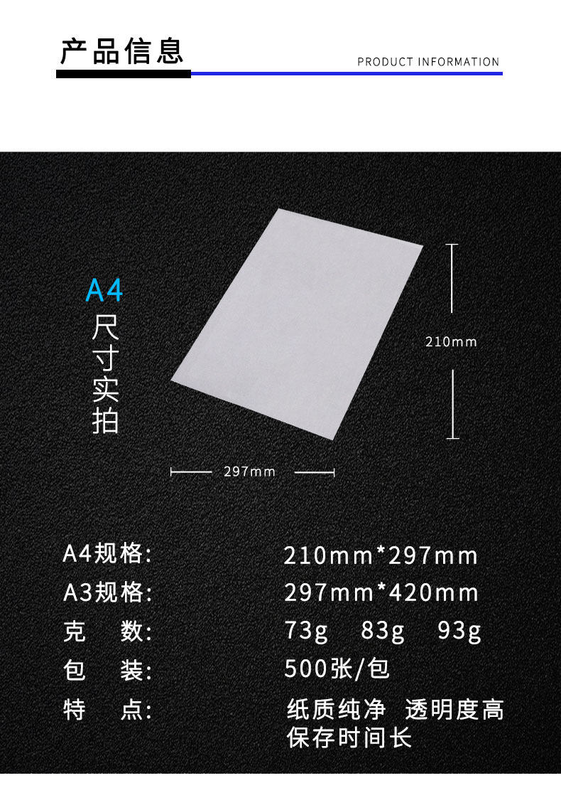 优必利 A3/A4 Серная кислота бумага Копия бумаги Прозрачный рисунок. Рисунок.