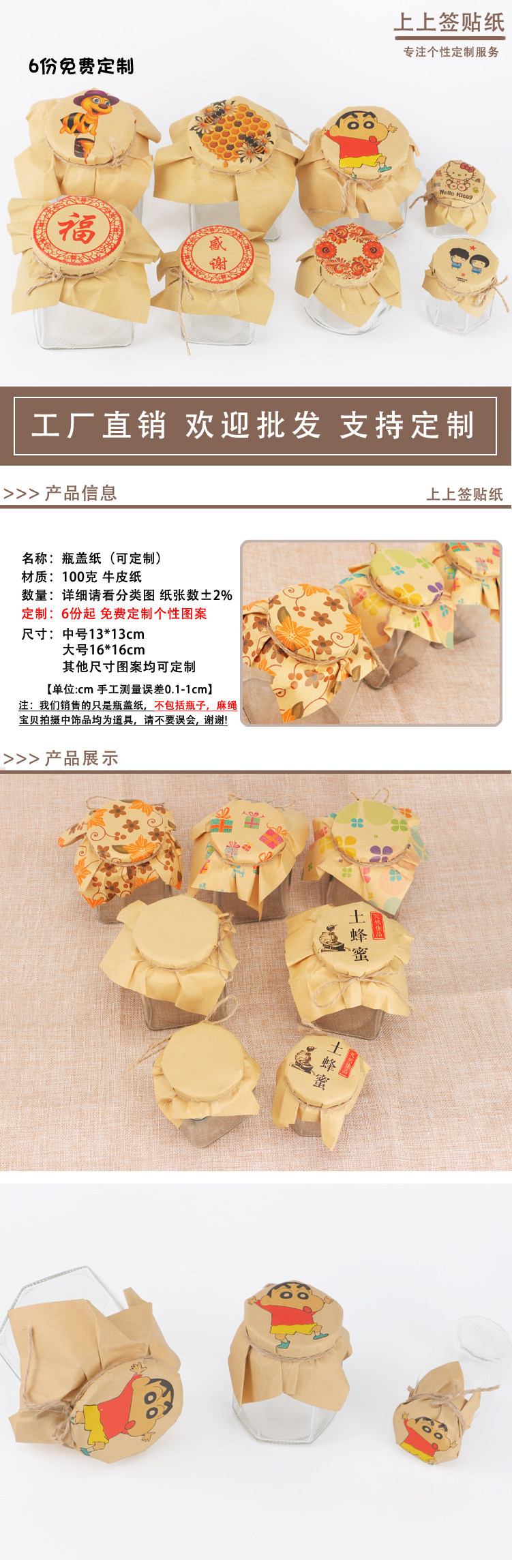 Крышка для бутылки с медом бумаги пудинга крышка бутылки бумаги крышка кожи на бумаге