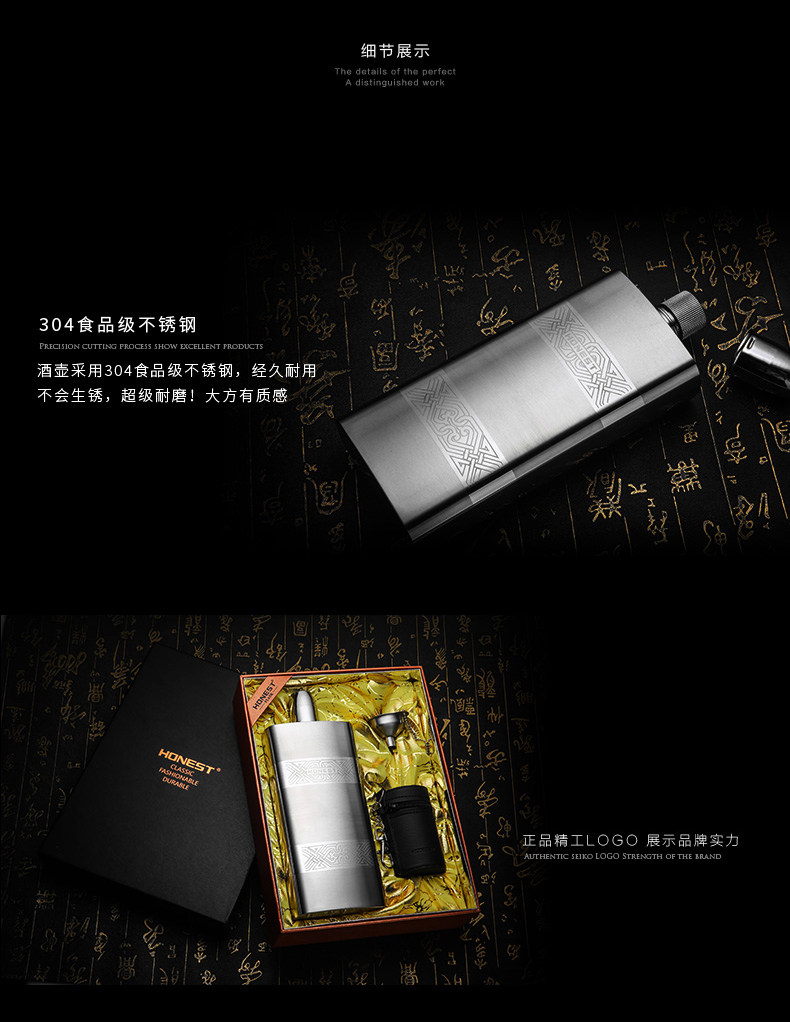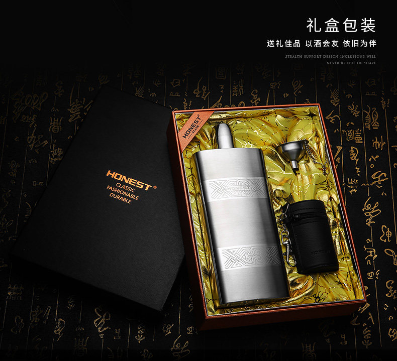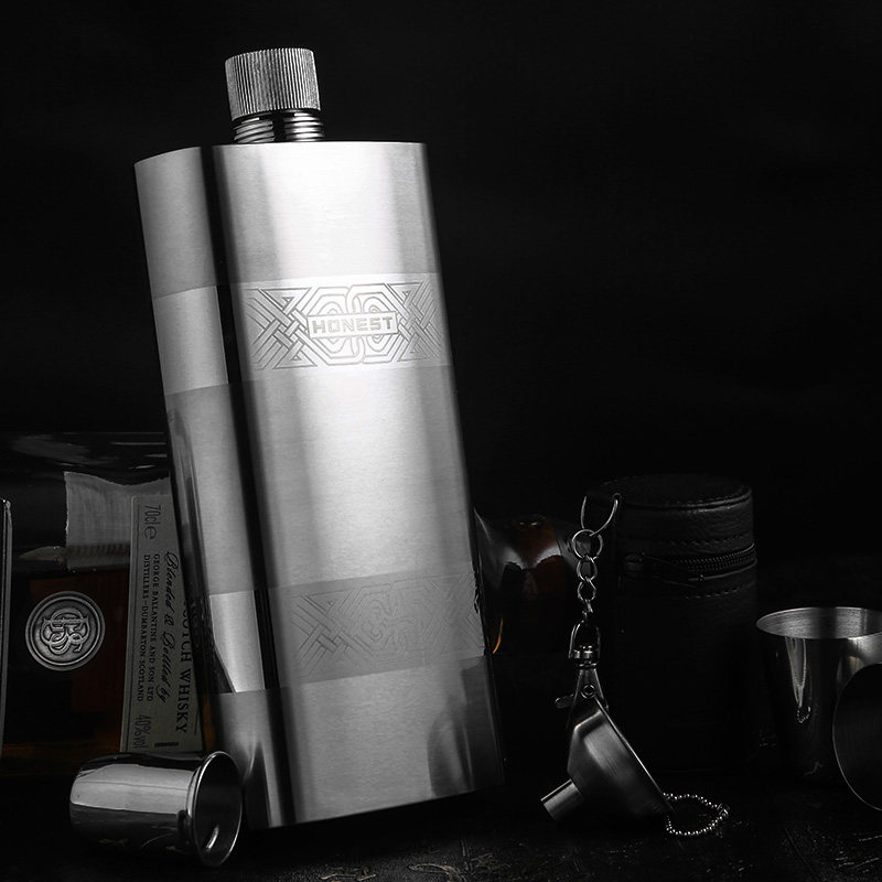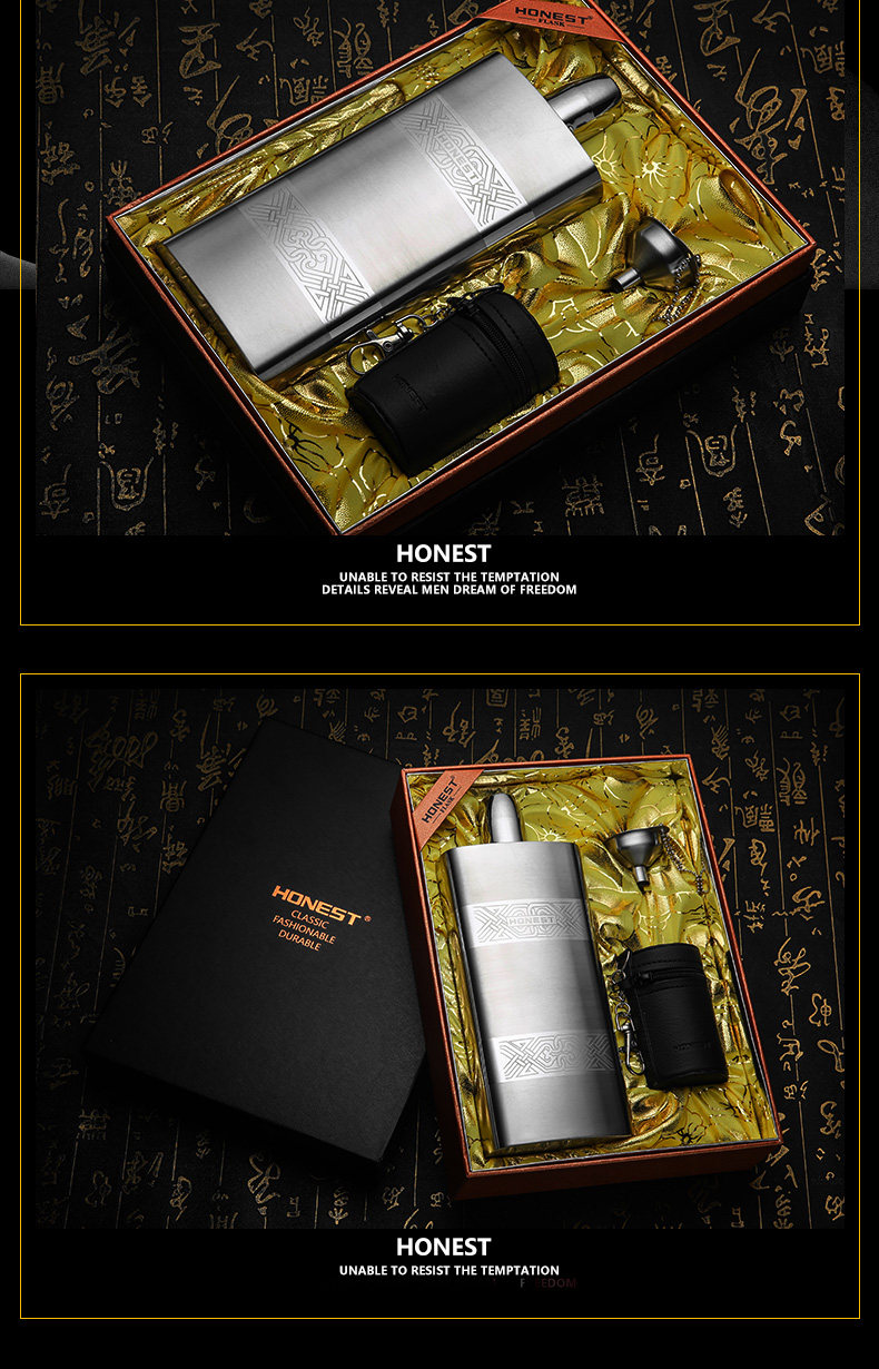 Высококлассная карманная фляжка из нержавеющей стали, подарочная коробка, комплект, увеличенная толщина, нержавеющая сталь AISI 304, Германия, объем 17, 17 унций