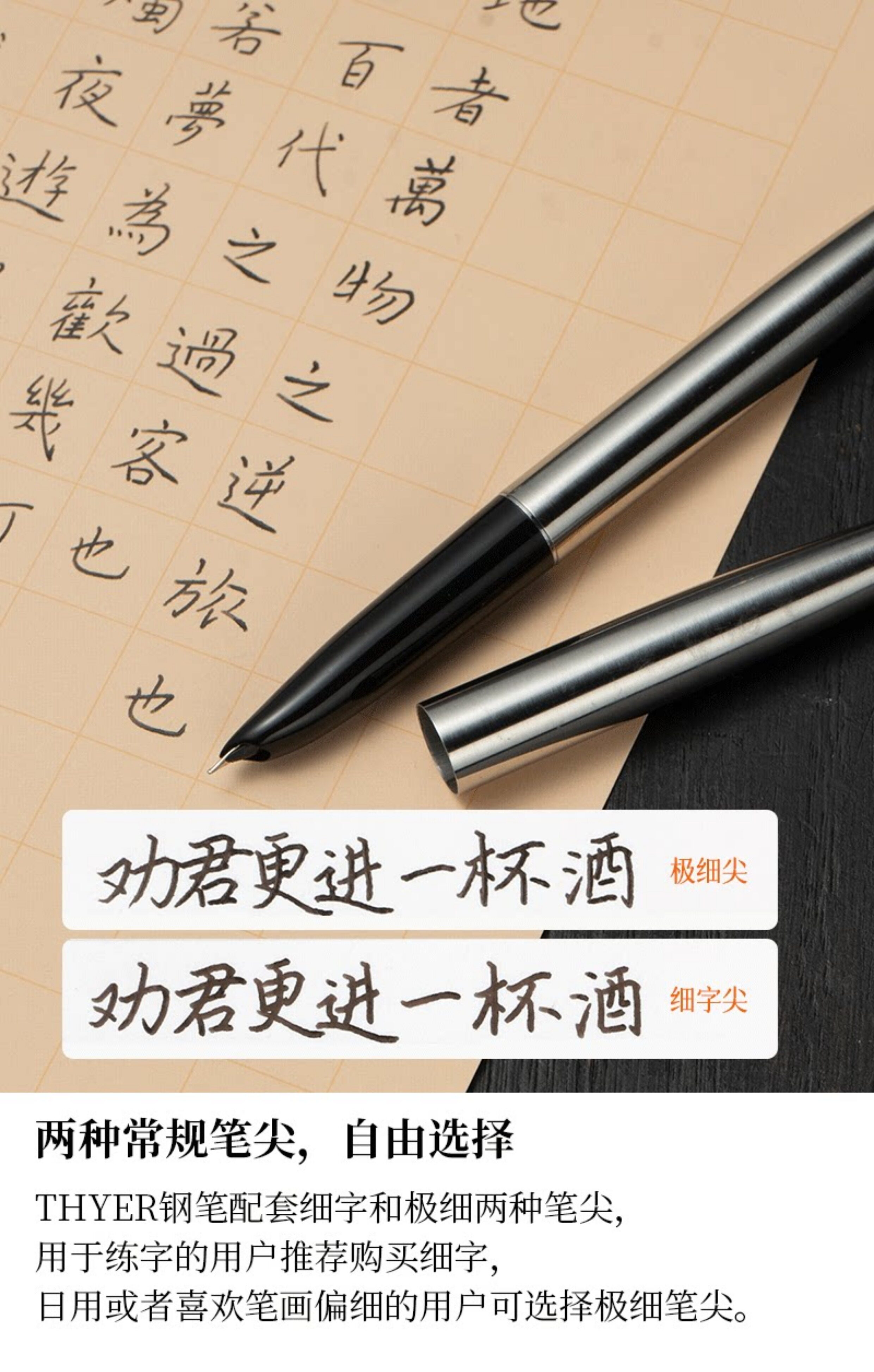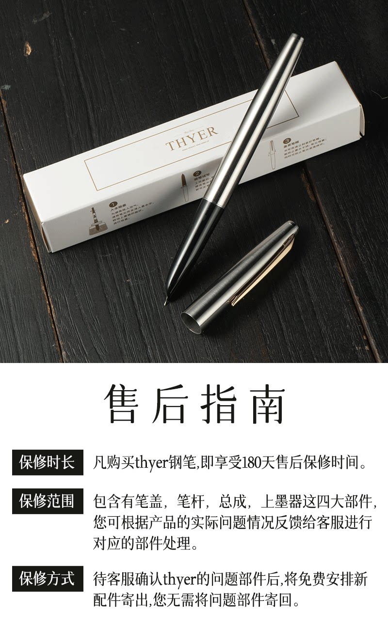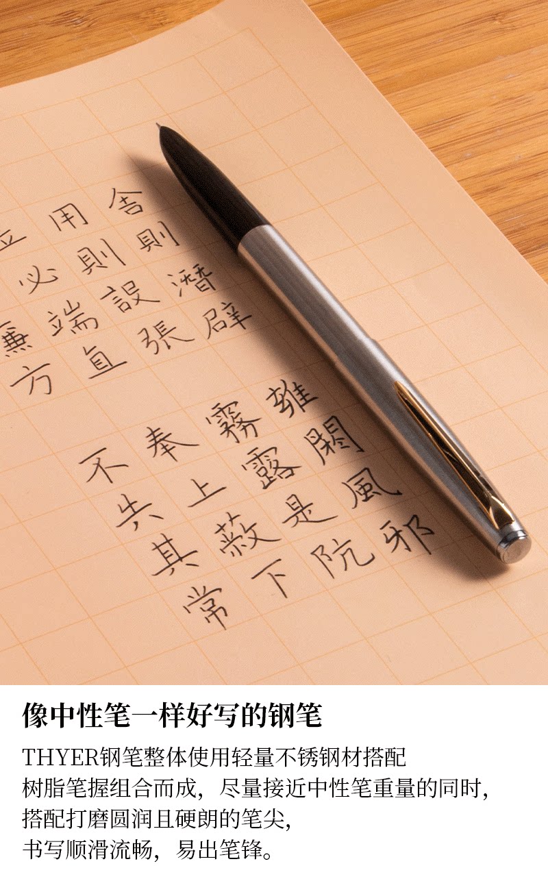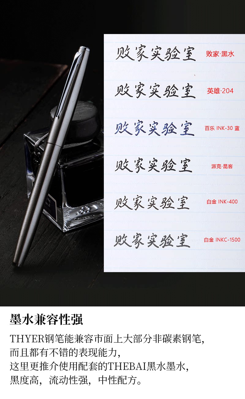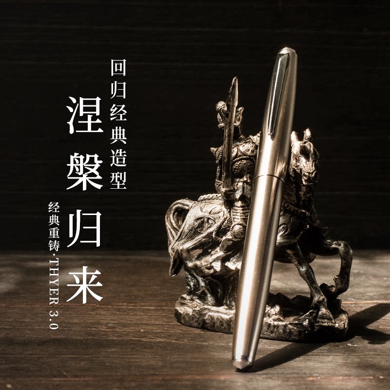 Цельностальная перьевая ручка THYER с темным наконечником, металлическая ручка с чернилами для студентов, занимающихся каллиграфией, официальный стандартный пишущий инструмент