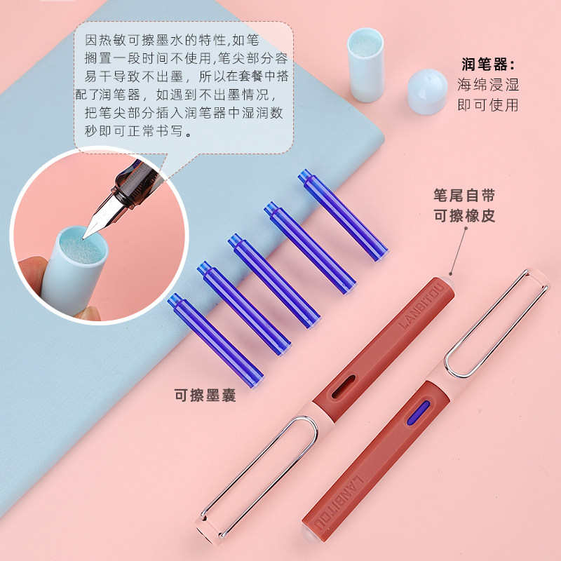 2 ручки с ручками 7027M - это тепловая чувствительность, чтобы стереть положительный икона Morandi Dark Sacks Demon Mo Mo, может легко лепить учащихся начальной школы Blue и Black Ink Sace в третьем классе