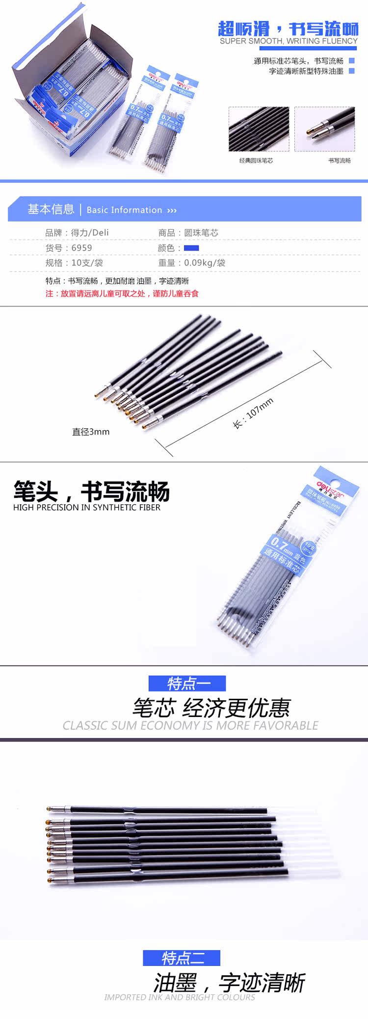 Канцтовары для офиса, шариковое украшение-шарик, синяя ручка-роллер, 0.7мм