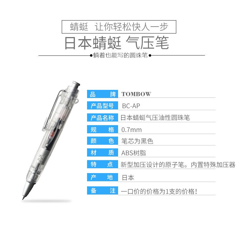 Япония Tombow Dragonfly BC-AP Круглый бусин-ручка Airpress Travel Student Student Atomic Oil Pens