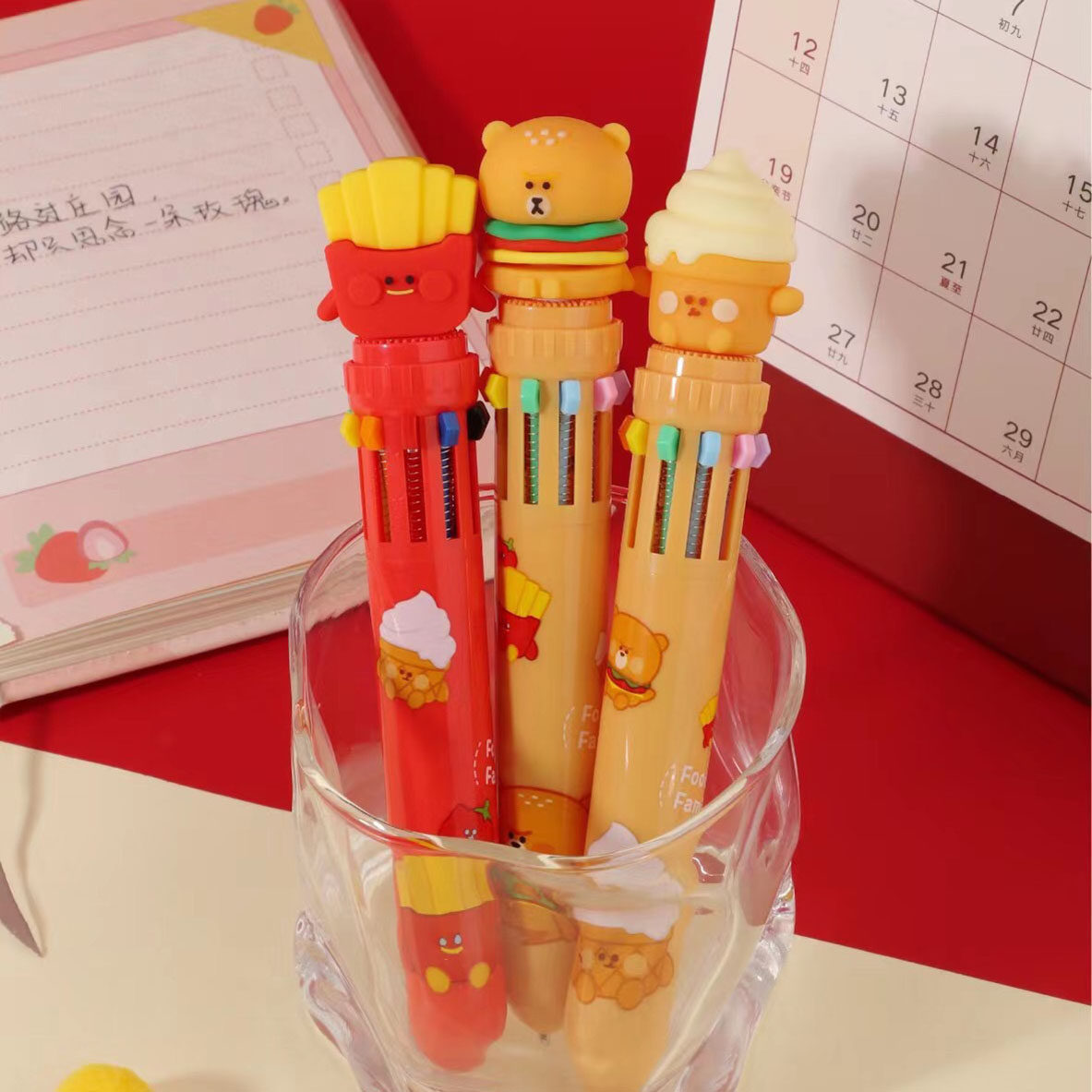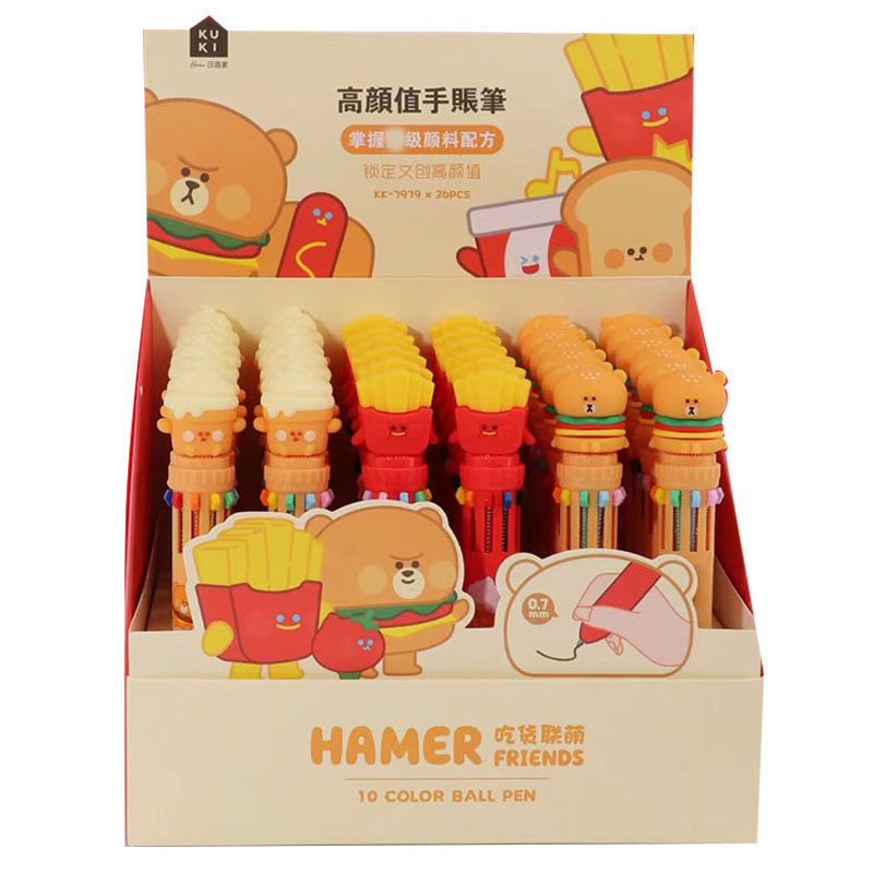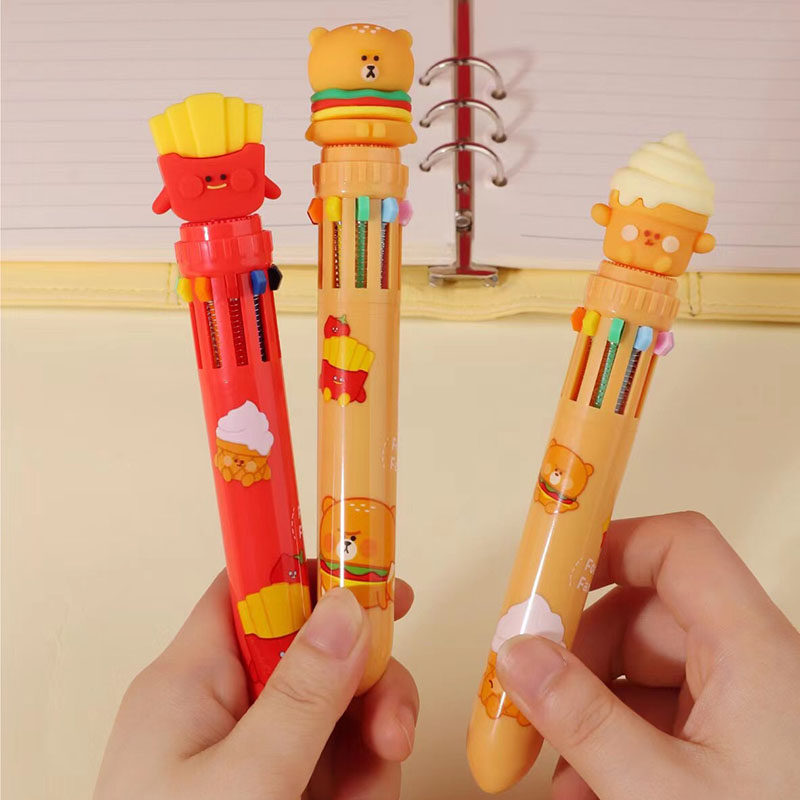 Креативная милая шариковая ручка, универсальные мультяшные многоцветные цветные карандаши для школьников, 10 цветов
