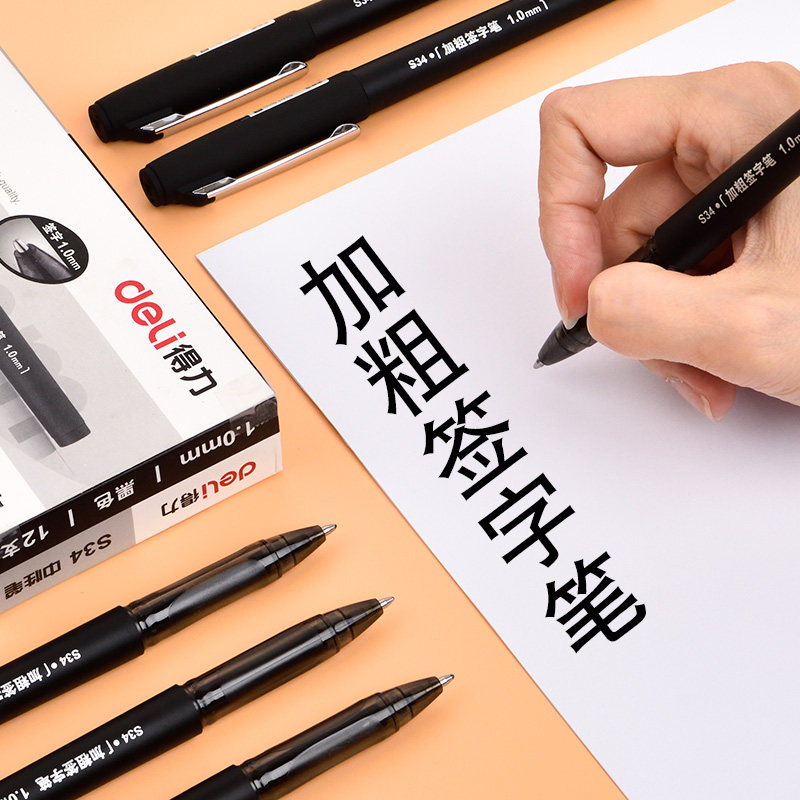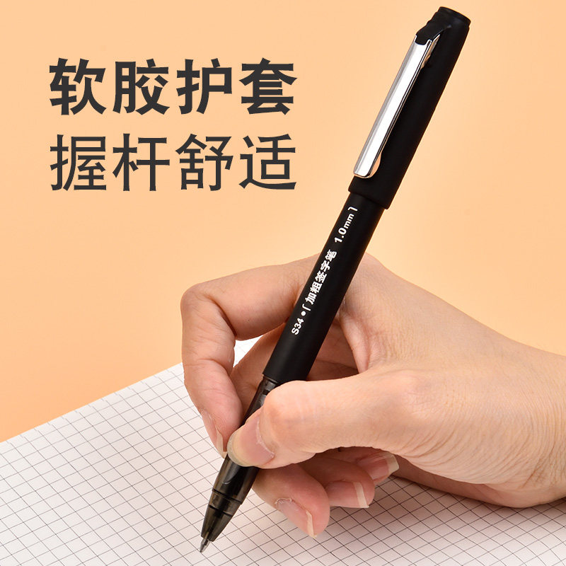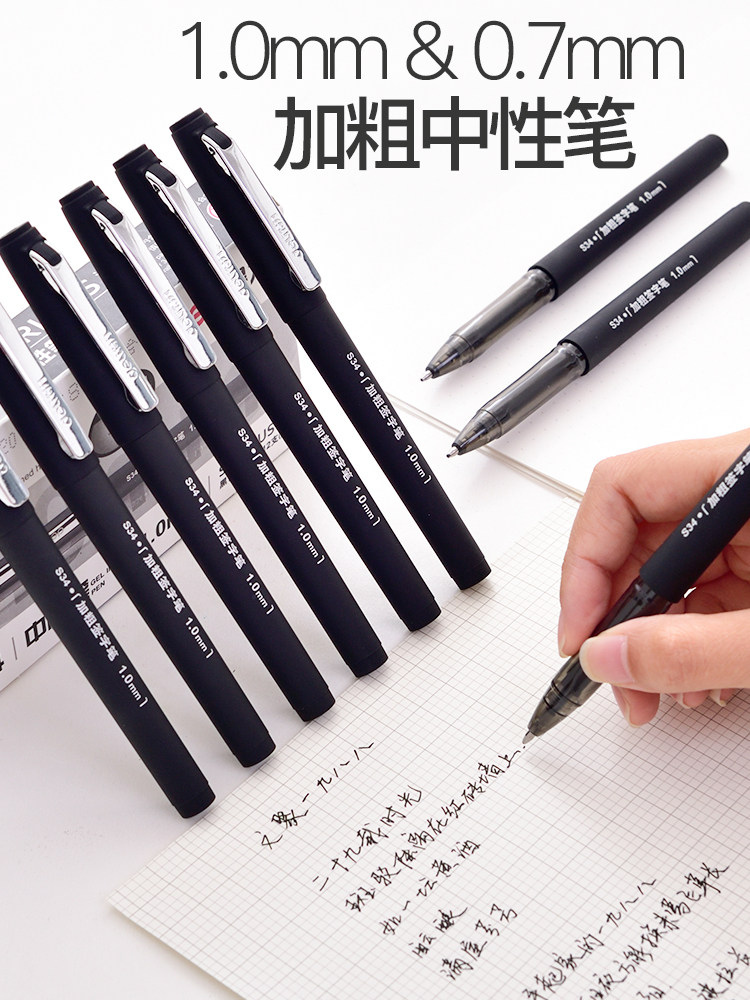 Черная ручка-роллер, ручка на водной основе, вместительная и большая каллиграфия для школьников, диаметр/размер 1.0, 1.0мм