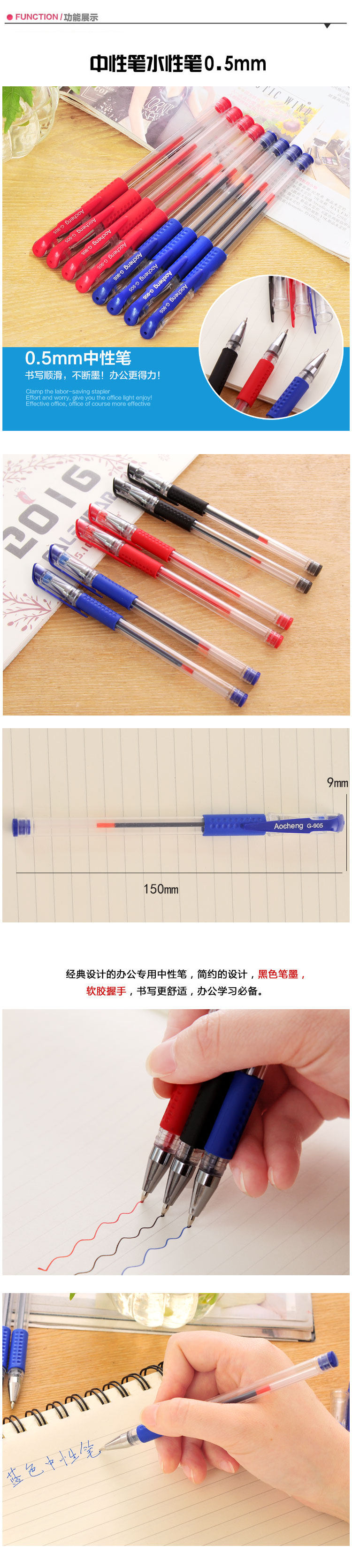 Ручка-роллер, черная ручка на водной основе, пуля, канцтовары, 0.5мм
