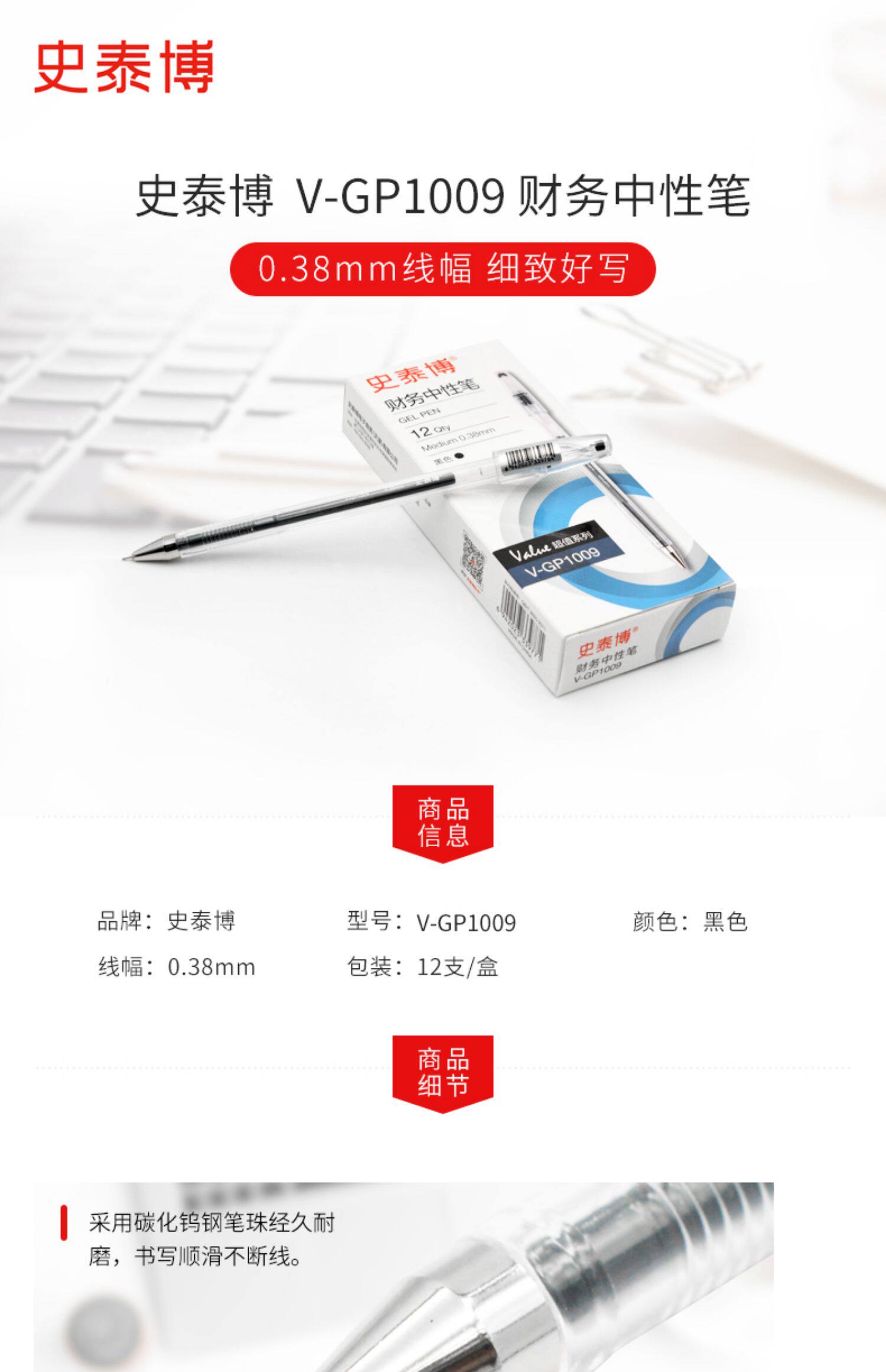 Stepbo Office Public Products V-GP1009 Финансовая нейтральная ручка 0,38 мм проводка черная синяя 12 филиала/коробка