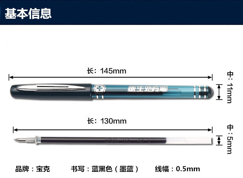 Baoke 2178 Pen 0,5 мм чернила синяя вода -тип -тип голубо -блок -нейтральный врач.