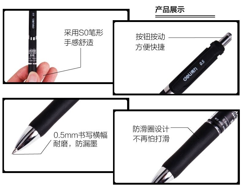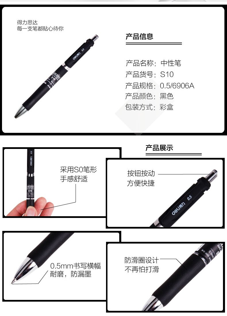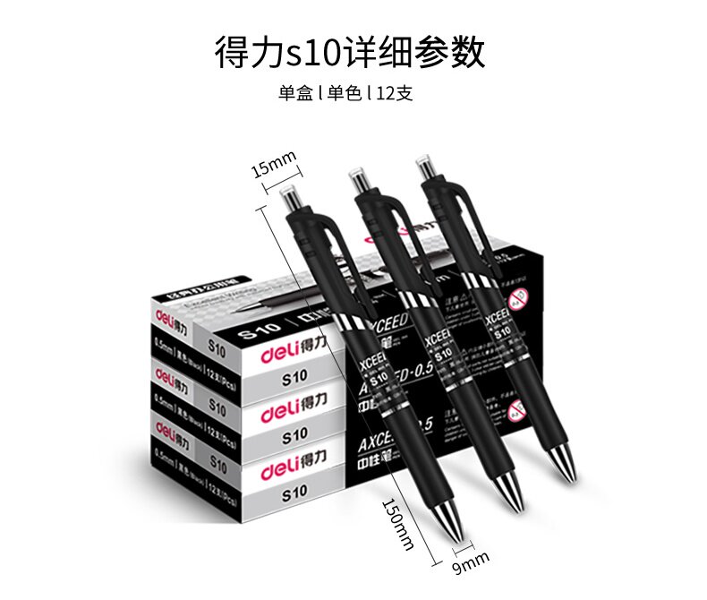 Deli S10 Office Student Test Special 0,5 мм ручка Core Press Press Dynamic Carbon Black Natural Pen Water Pen Pen