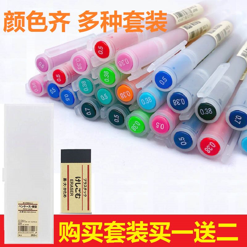 Muji, канцтовары, комплект, черный гель, ручка-роллер, 0.38/0.5мм
