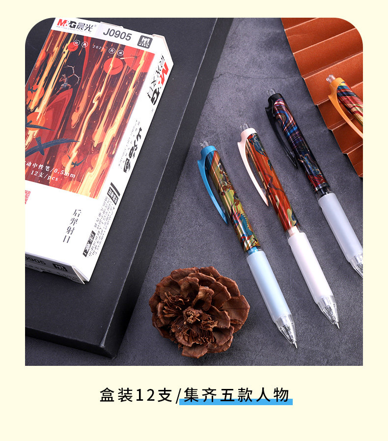 Канцтовары, ручка-роллер, черная вместительная и большая пуля для школьников, J0905, 0.5мм, широкая цветовая палитра
