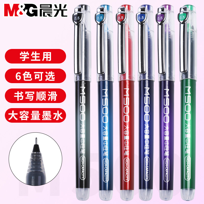 Ченгун нейтральная ручка Студент чистка темы M500 Тест Специальный черный 0,5 Быстрое черная ручка, большая мощность красных чернил Blue Black Full -Pipe Signature Pen