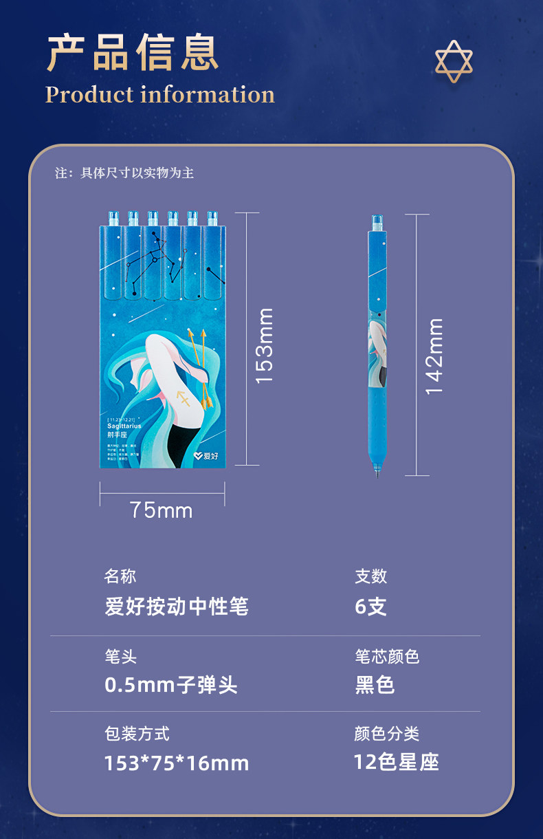 爱好 Знаки зодиака, милая креативная ручка-роллер, пуля, вместительная и большая высококачественная шариковая ручка, черные канцтовары, 0.5мм