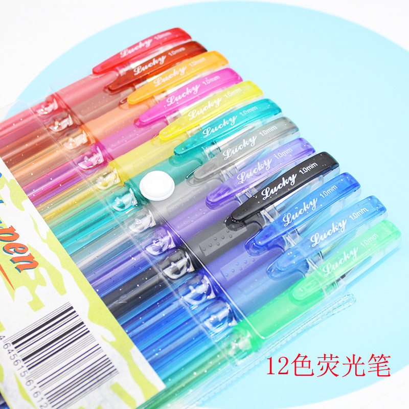 Флуоресцентный комплект для школьников и студентов, мигающая ручка-роллер, канцтовары, 12 цветов, планировщик