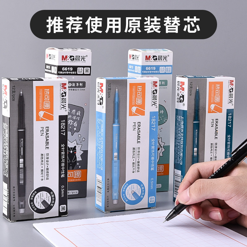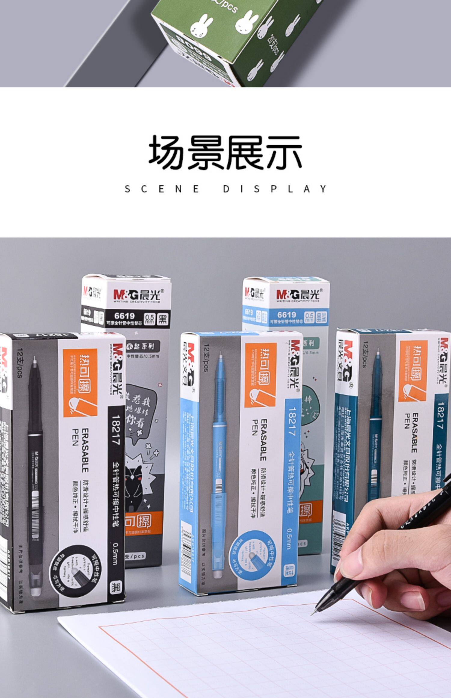 Утренняя растирание нейтральная ручка Использование простых моделей для третьего класса выделенного теплового моторного магии втирая горячее ручка ручка 3-5 ученики начальных школ могут потирать ручку черное кристалл синий ручка ядра 0,5 полная игла