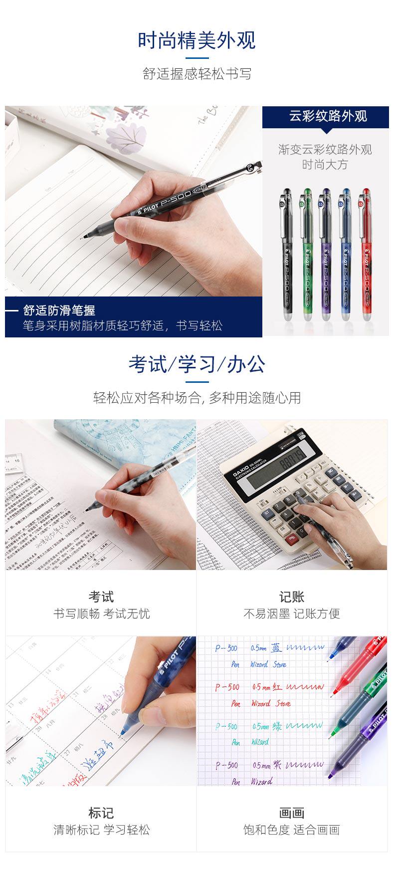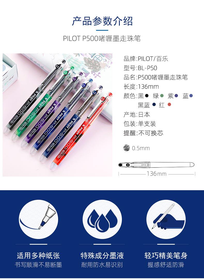 Японский пилот Belle Netural Pen P500 Pen ручка P700 Черно -синий красный экзамен студентов 0,5