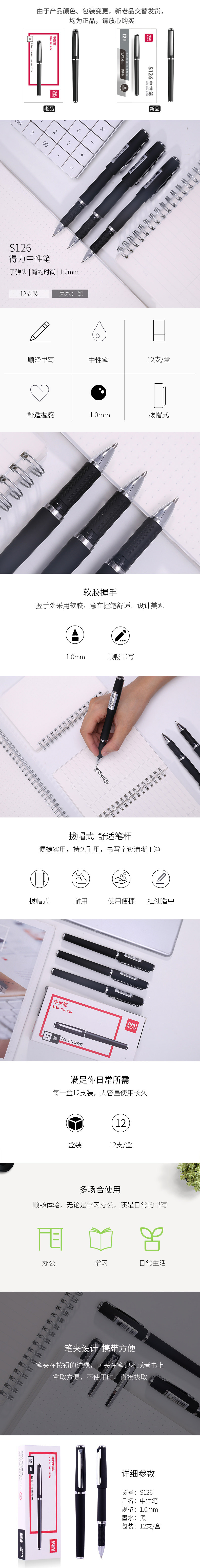 12 Леди S126 Нейтральная ручка 1.0 Черные шапки для рисования соуса Подпись пера для ручки 6937