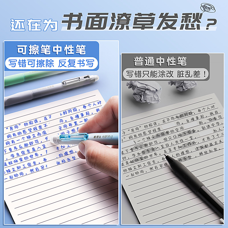 Стираемая ручка-роллер для школьников и студентов, синие черные цветные карандаши, шариковая ручка