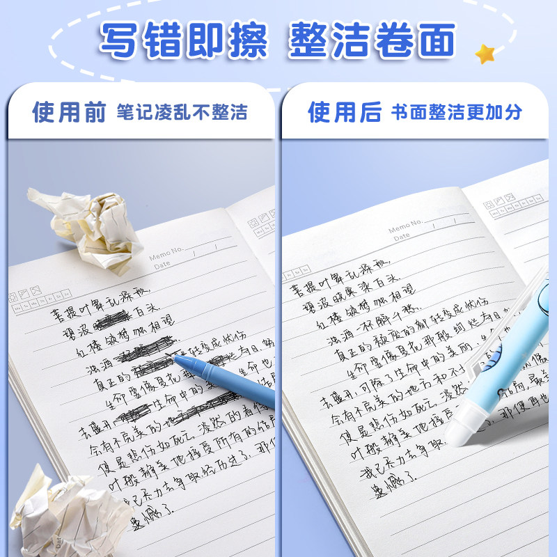 Стираемая детская синяя черная высококачественная ручка-роллер для школьников