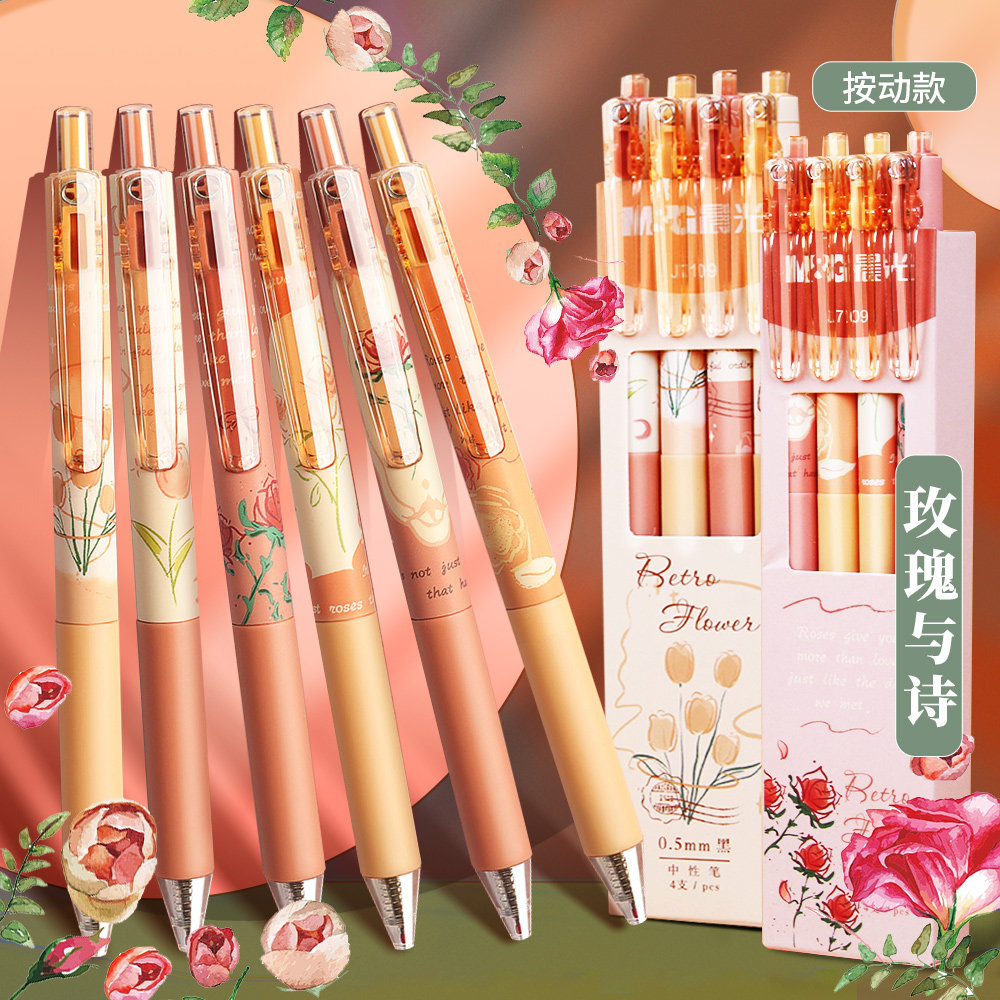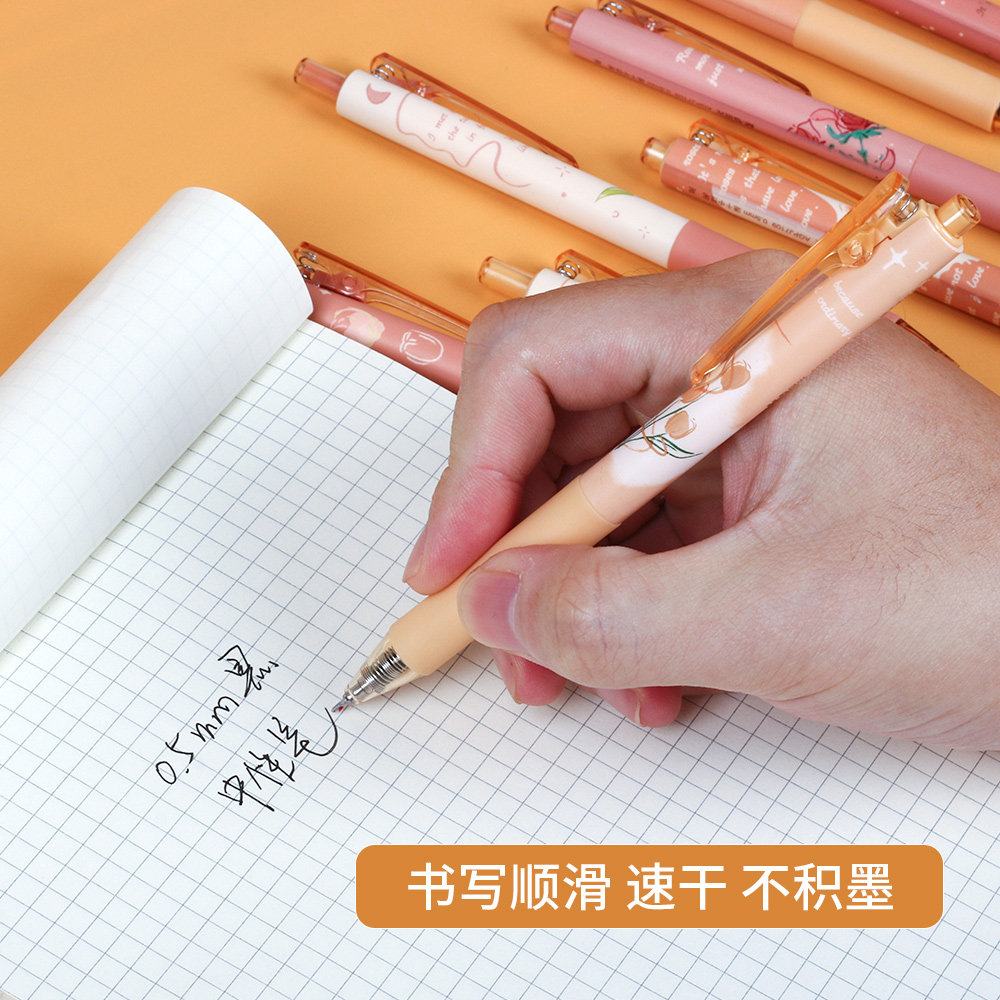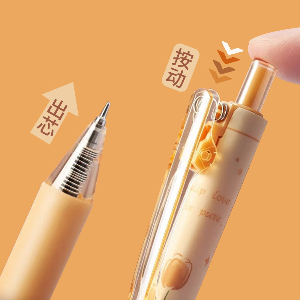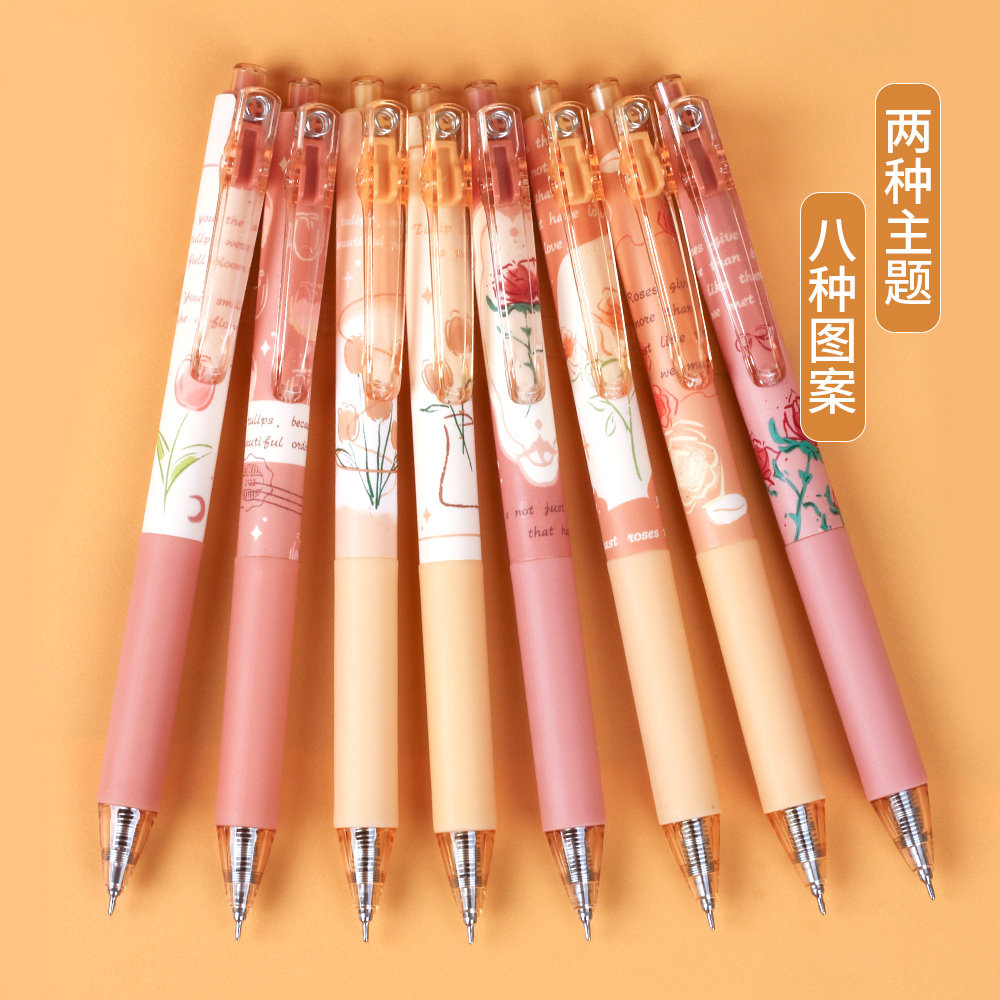 Утренний свет в соответствии с движущимися цветущими стихами в нейтральной ручке, розовых тюльпанах, нажмите на ручку высокую стоимость, подпишите ручку, основную ручку для воды, черные бусины