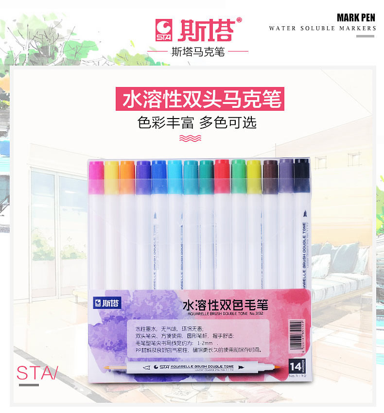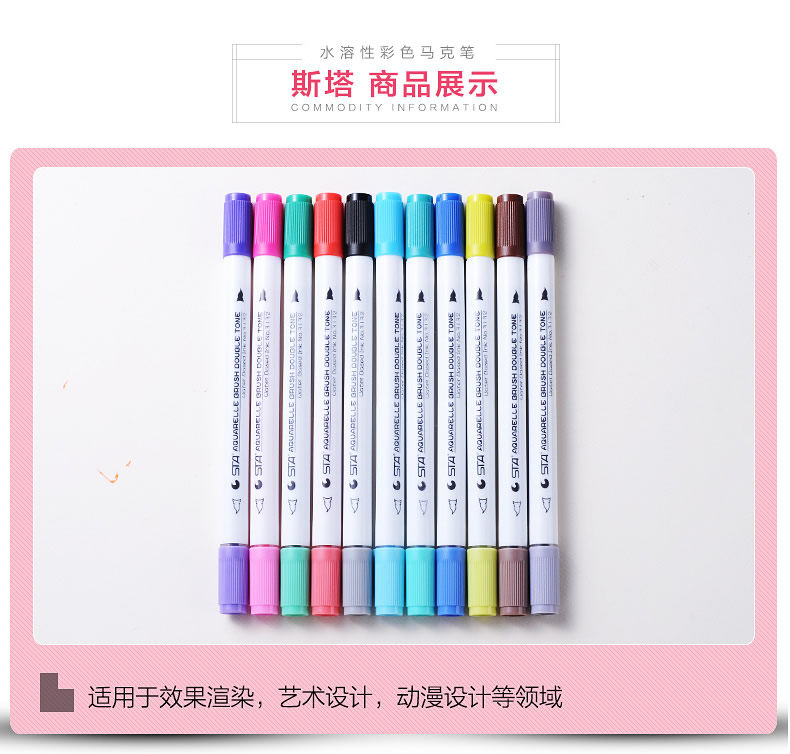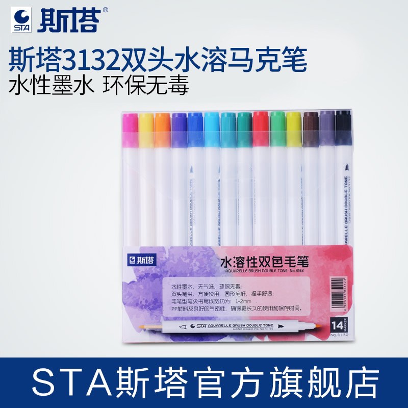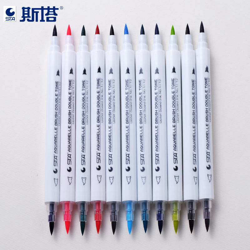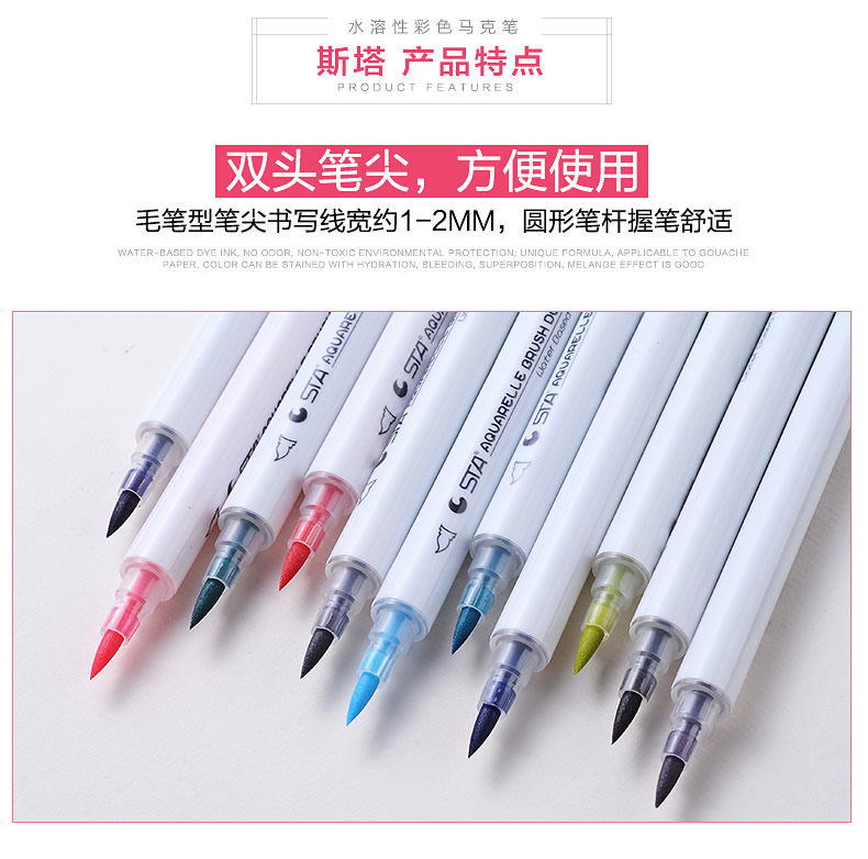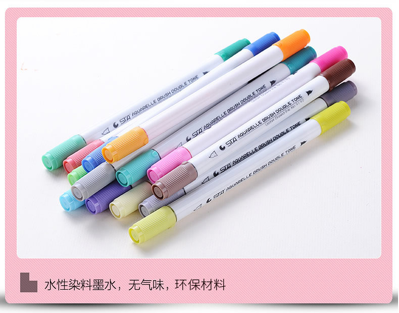 Водорастворимый двухцветный маркер, комплект, пигментированные комиксы, дизайнерская оригинальная художественная кисть для письма для школьников и студентов, 24 цветов, ручная роспись