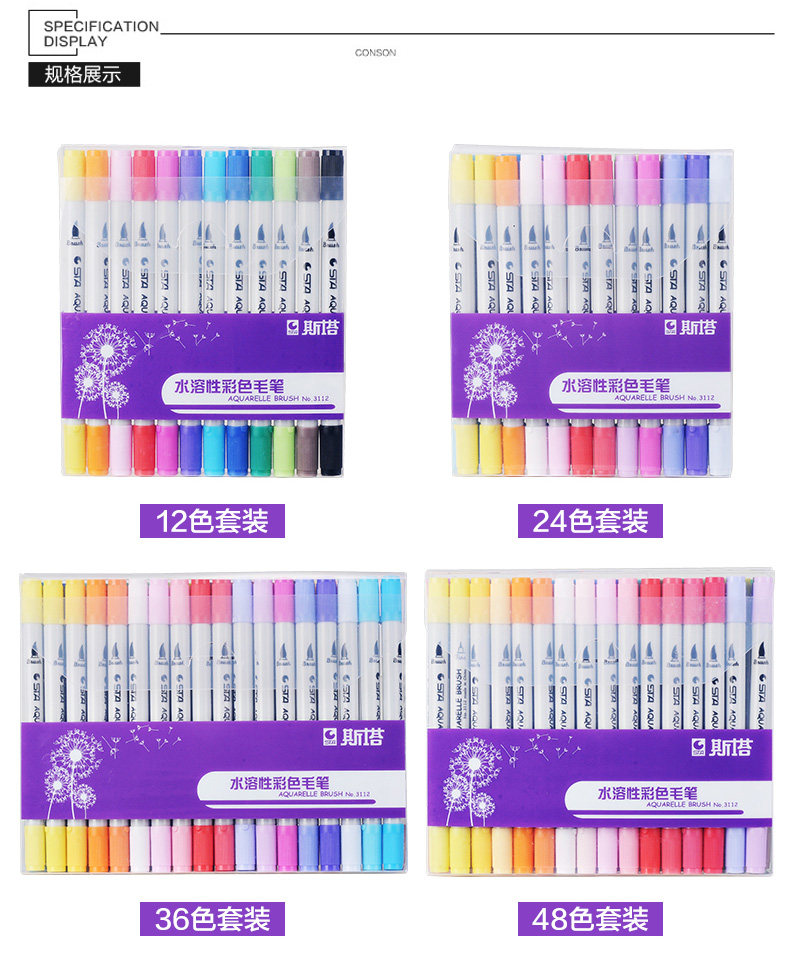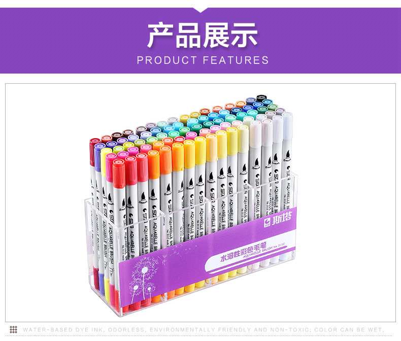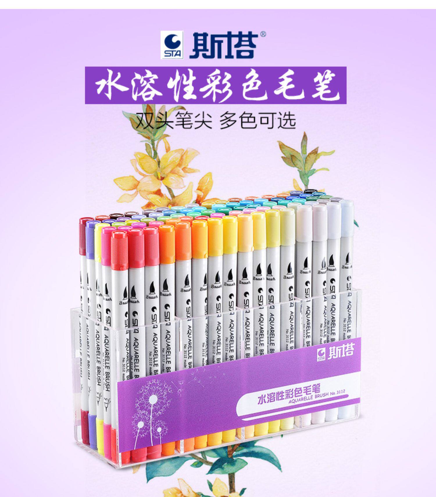 Маркер, водорастворимый двусторонний комплект для школьников и студентов, водорастворимая акварель на водной основе, мелки, ручная роспись, 36, 80 цветов