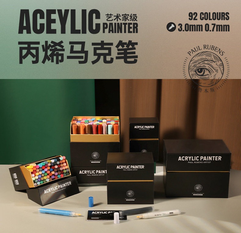 鲁本斯 Акрил, маркер, водонепроницаемый комплект, желтые белые красные дизайнерские комиксы, граффити, 92 цветов, ручная роспись