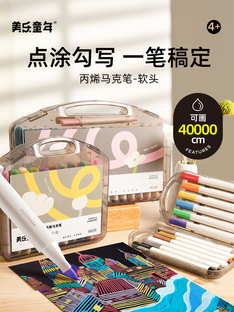 Акрил, детский художественный маркер, нетоксичные полупрозрачные мелки для школьников и студентов, цветные карандаши для детского сада, фартук для рисования, кисть, акварель, можно стирать, 24 цветов, 48 цветов