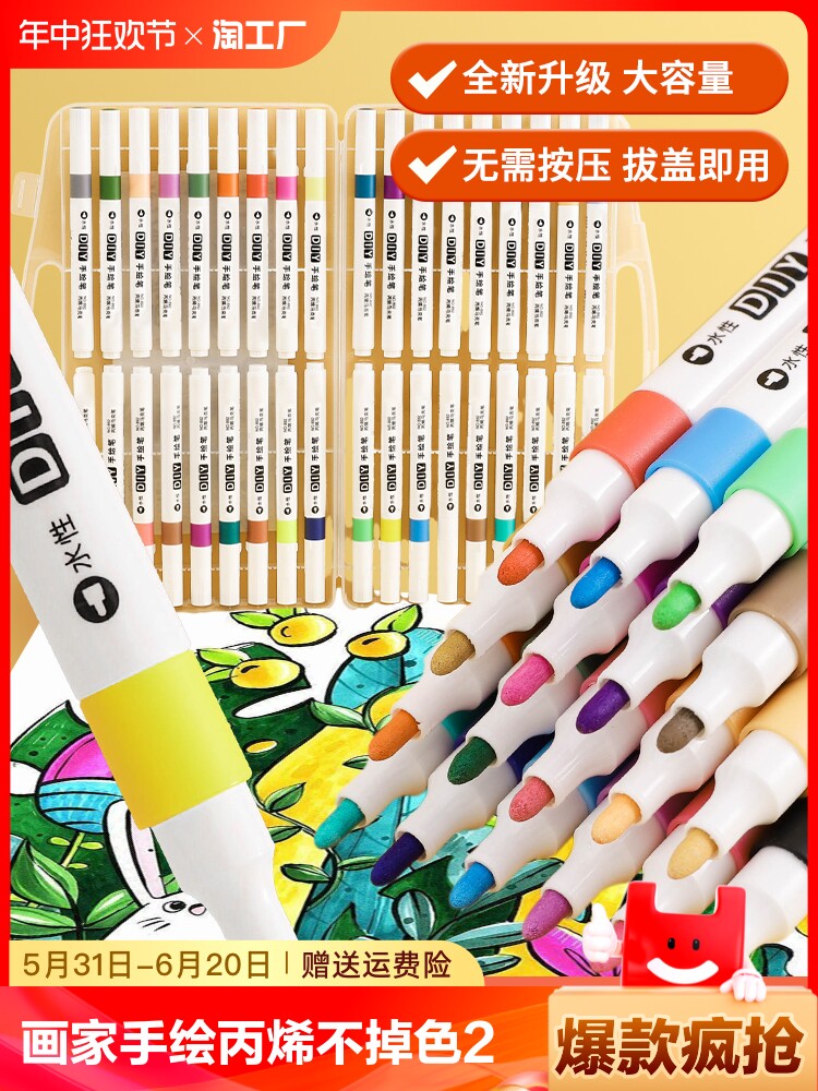 Акрил, универсальный окрашенный маркер, детская стеклянная кисть со стаканом, быстросохнущая профессиональная водонепроницаемая раскраска, ручная роспись, не выцветает, граффити, 48 цветов, 24 цветов, 12 цветов, можно стирать, цвет