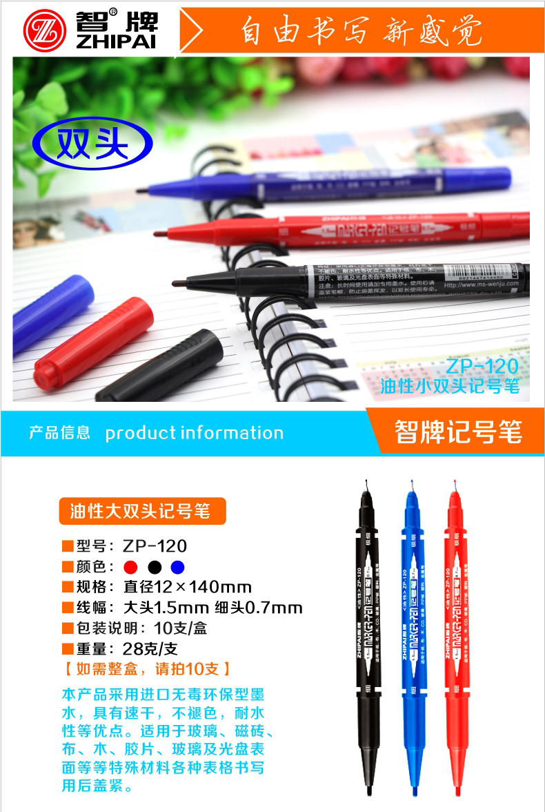 智牌 ZP1220 Небольшой двойной ручку с двумя головами ручка.