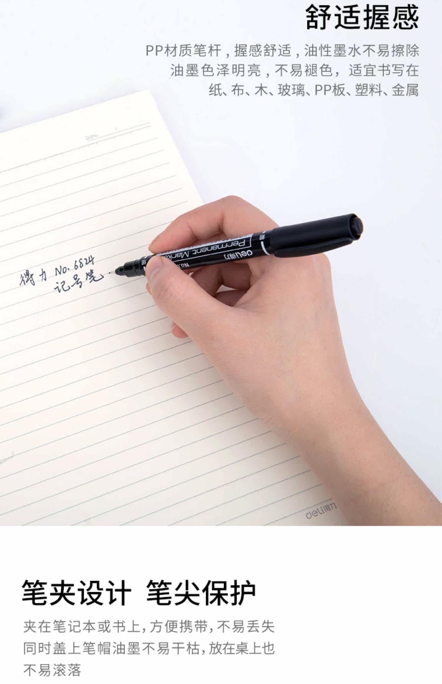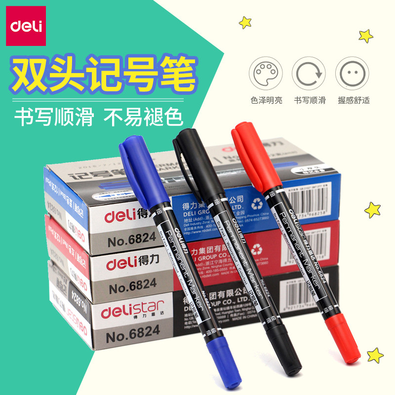 Deli 6824 Небольшой двухголочный масла маркерной ручки маленькая голова и тонкая голова ручки пенсин