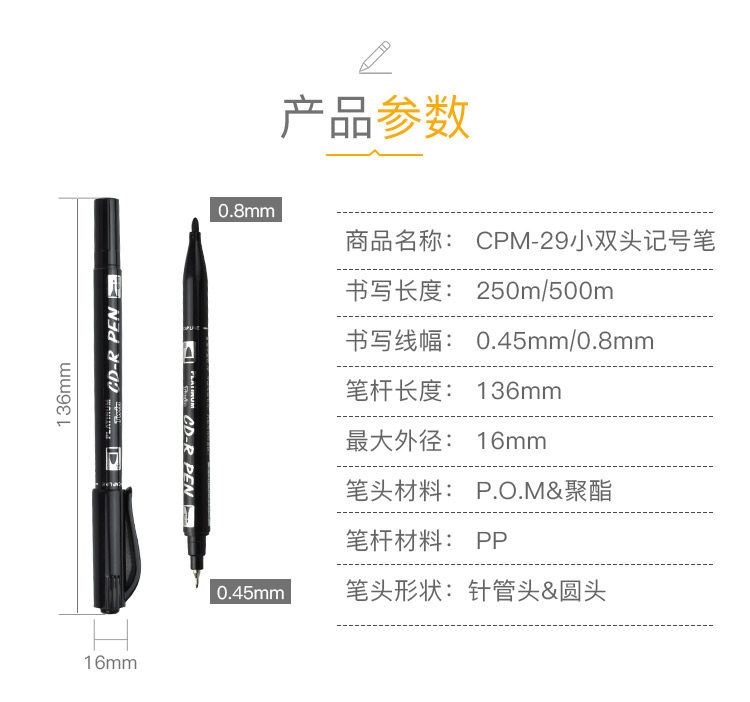 白金 Бренд с двойной головкой ручка ручка быстро сухой масля