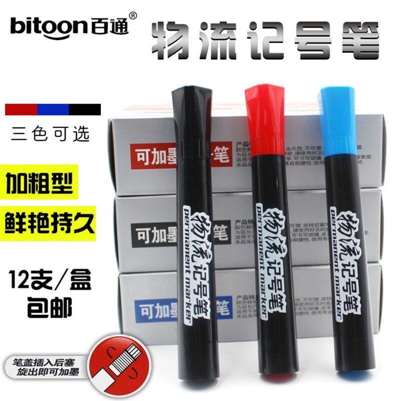 百通 BT-957 Одноголовный масляный перо водонепроницаемый логистический маркер может добавить чернила большая головка ручка 12 упаковки бесплатная доставка