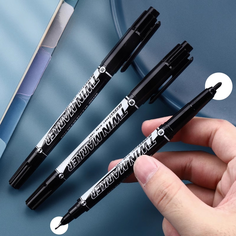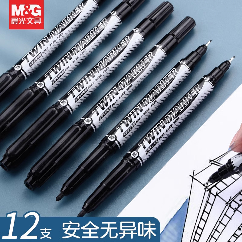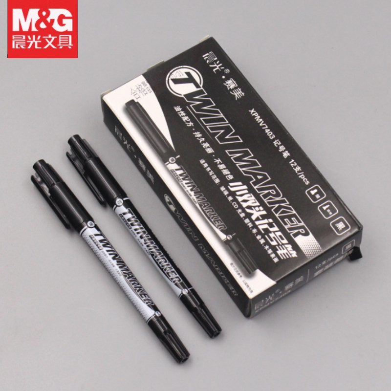 Маленький двусторонний маркер Chenguang, толстая головка 1,0 мм, тонкая головка 0,5, черный, красный и синий, двусторонний, быстросохнущий, водостойкий, невыцветающий, маслянистая крючковая линия, линейная ручка V7403, художественная крючковая линия, линейная ручка, 12 штук в коробке